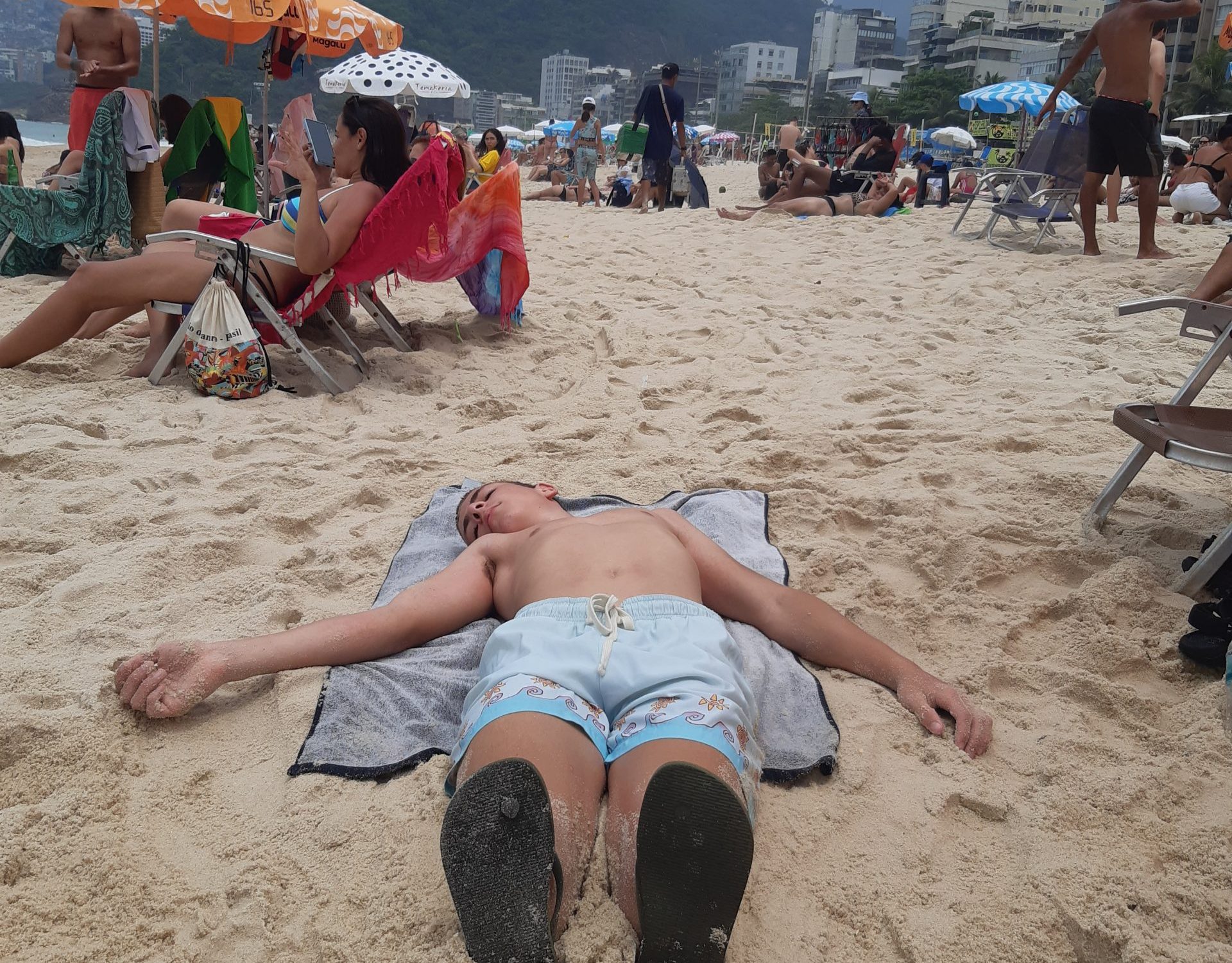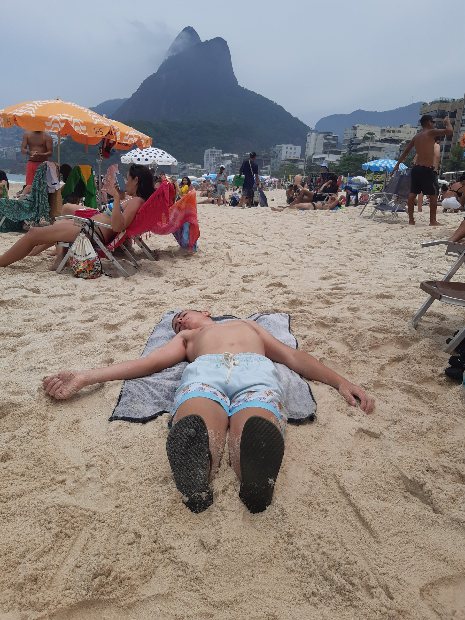 Her er metroer, sporvogne og relativt billige taxaer, så det er nemt at komme rundt. 40 minutter i offentlig transport og så kan vi hoppe i bølgerne ved Ipanema. Det er helt vildt, at Rios baghave er 2 vidunderlige lange strande. Den anden tættest på centrum er Copacabana. Ipanema er mere upper-class, renere og mindre tæt belagt med strandgæster. Bølgerne er vilde og vi har det herligt. Vi har lejet 3 strandstole og 2 parasoller for at være på den sikre side. Alligevel ligner vi 3 kogte krebs, da vi kommer hjem efter en god dag på stranden med efterfølgende shopping i Ipanemas levende og mangfoldige gader.