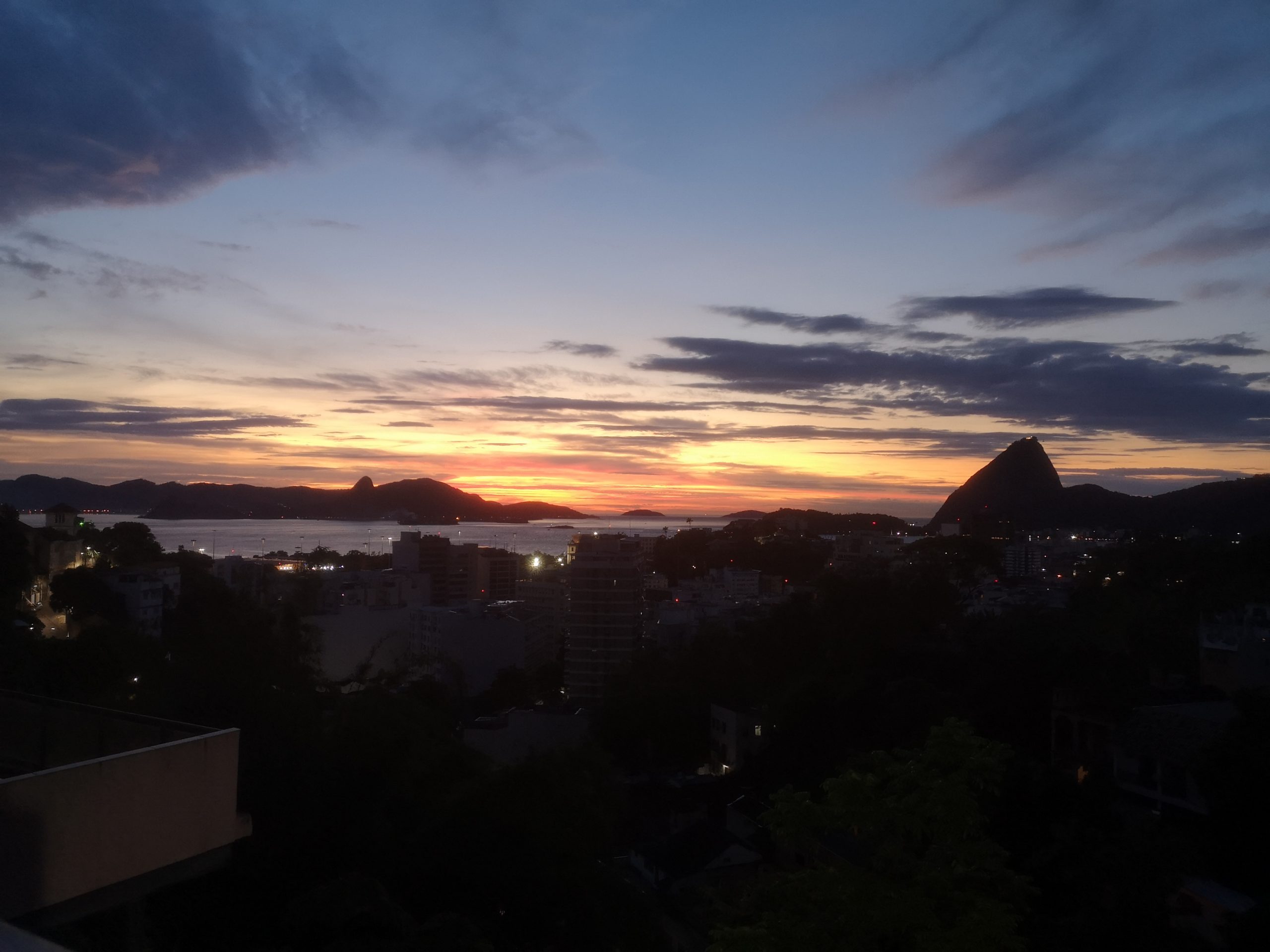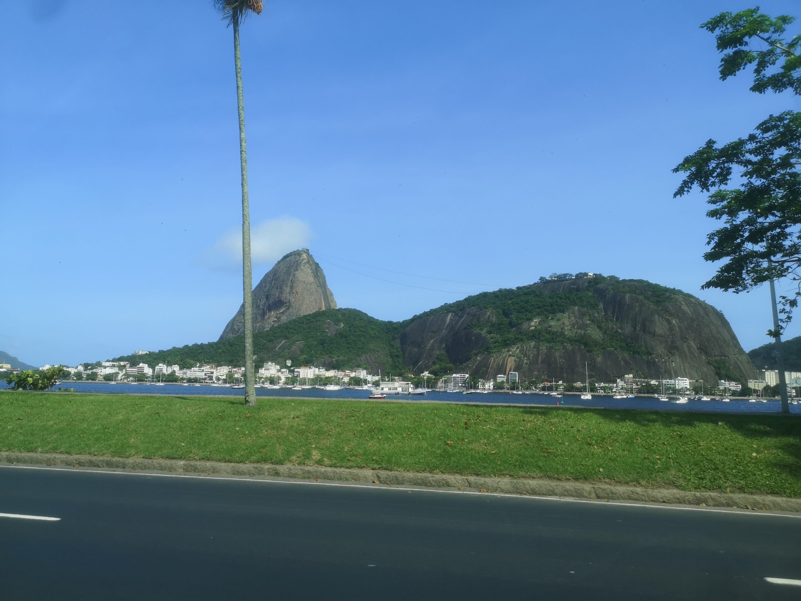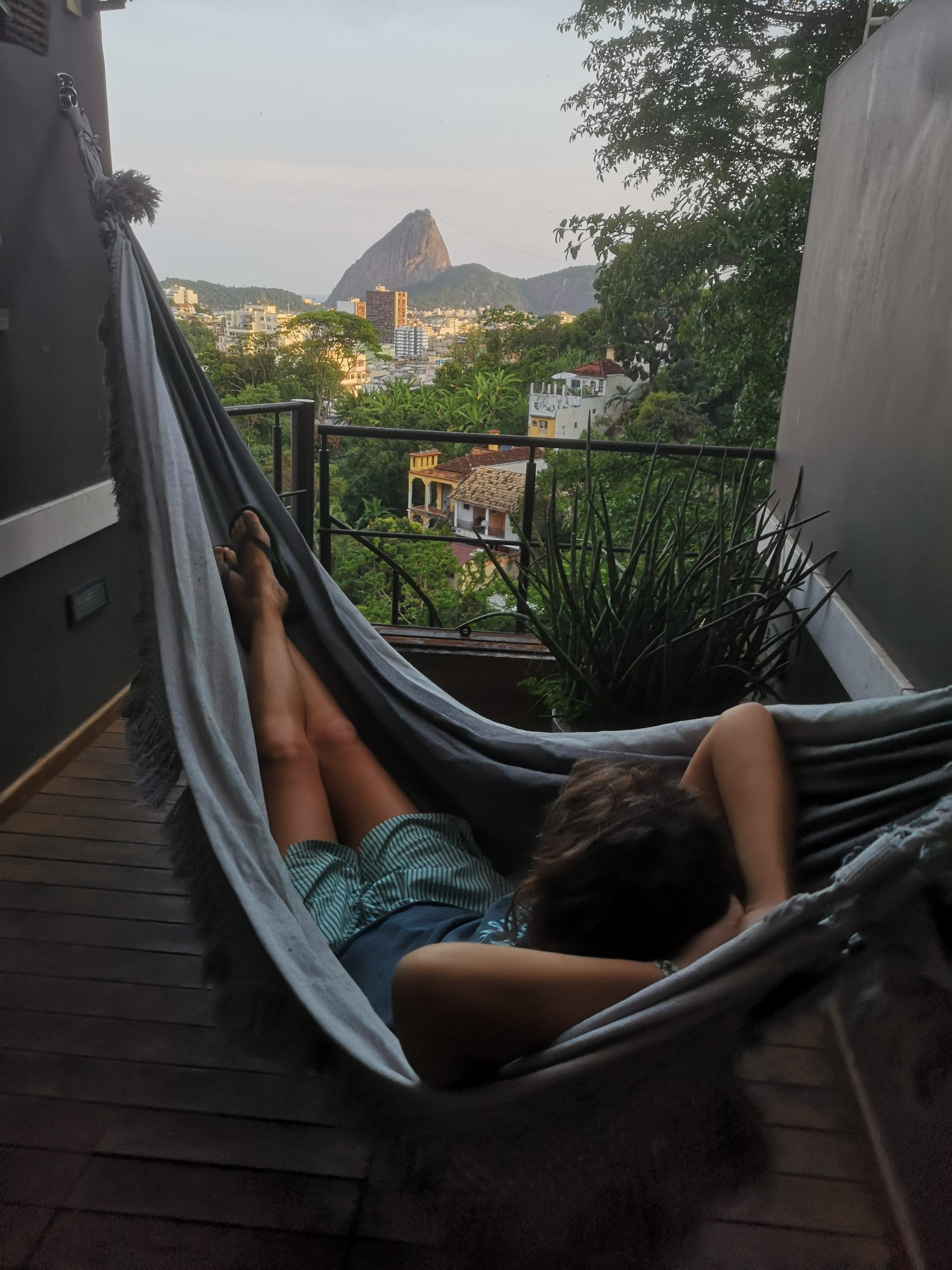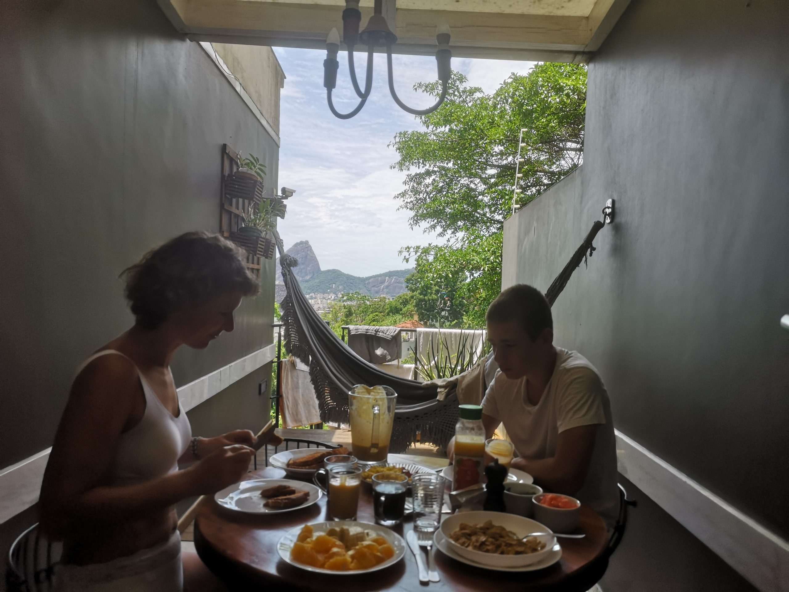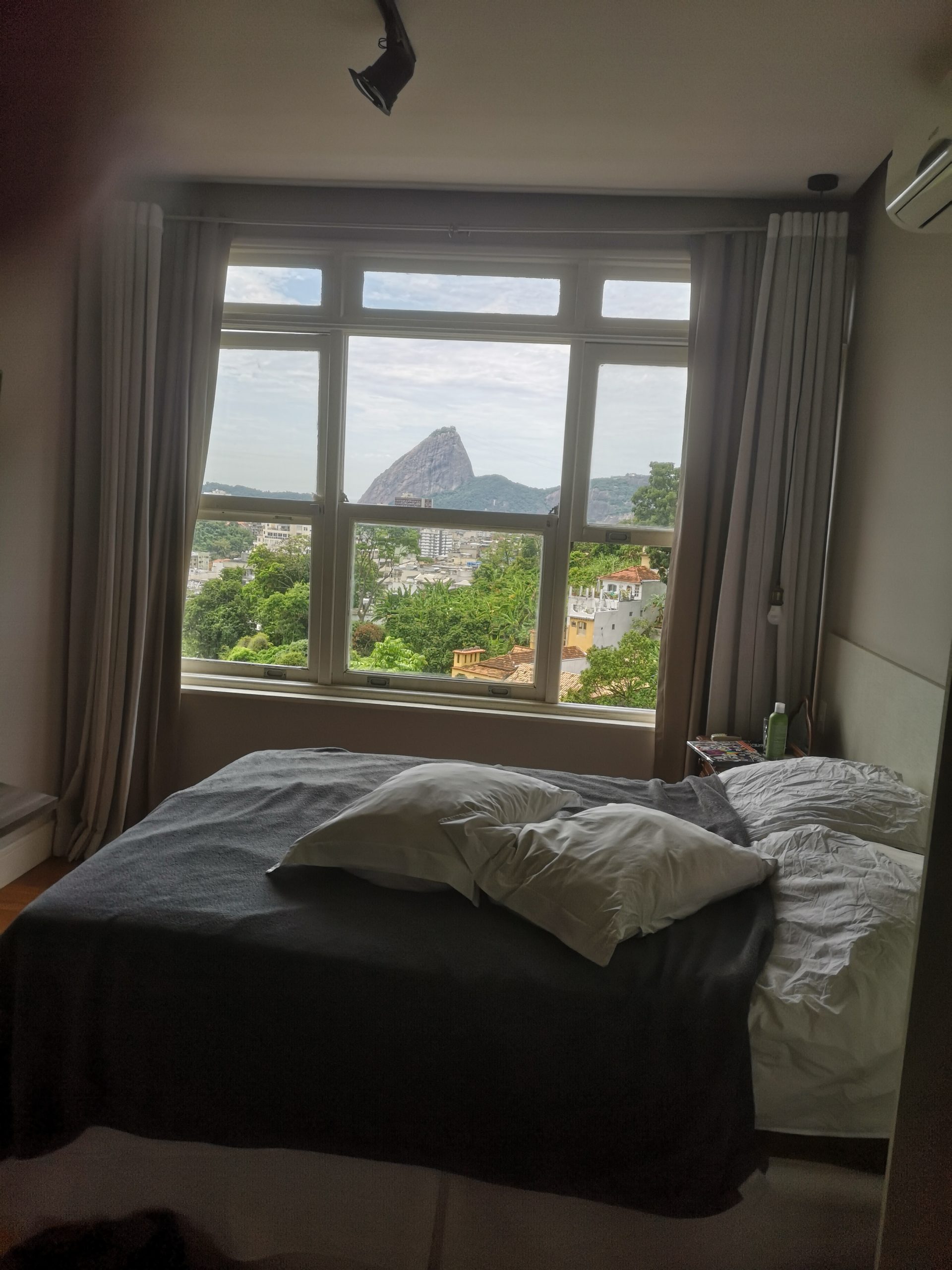 Fra vores soveværelse kigger vi direkte ud på Sukkertoppen. Den store klippe rejser sig 400 meter op af havet lige ud for indsejlingen til Rio Havn.