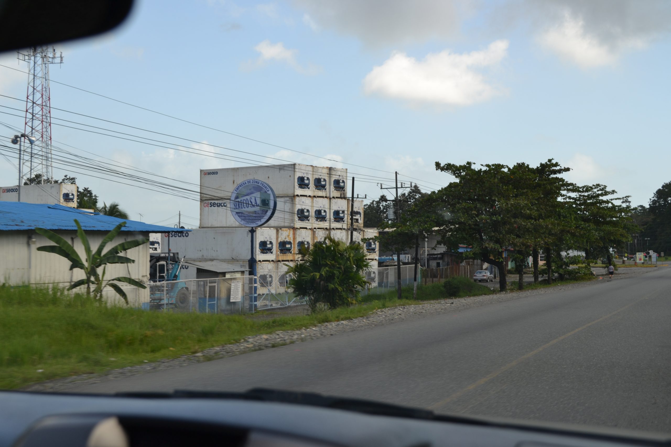 På vejen ud mod kysten kommer vi forbi containerplads efter containerplads. Drengene genkender Maersk containerne. Kommer han også her? – ja han er vist alle vegne, ham Maersk. Vi kører forbi Chiquita, le Monte og Dole. Alle de kendte mærker for frugt og især bananer har lasteplads her langs vejen til Porto Lemón. Vi runder helt sikkert de første 10.000 containere hvorefter pladserne udskiftes med bananplantager.