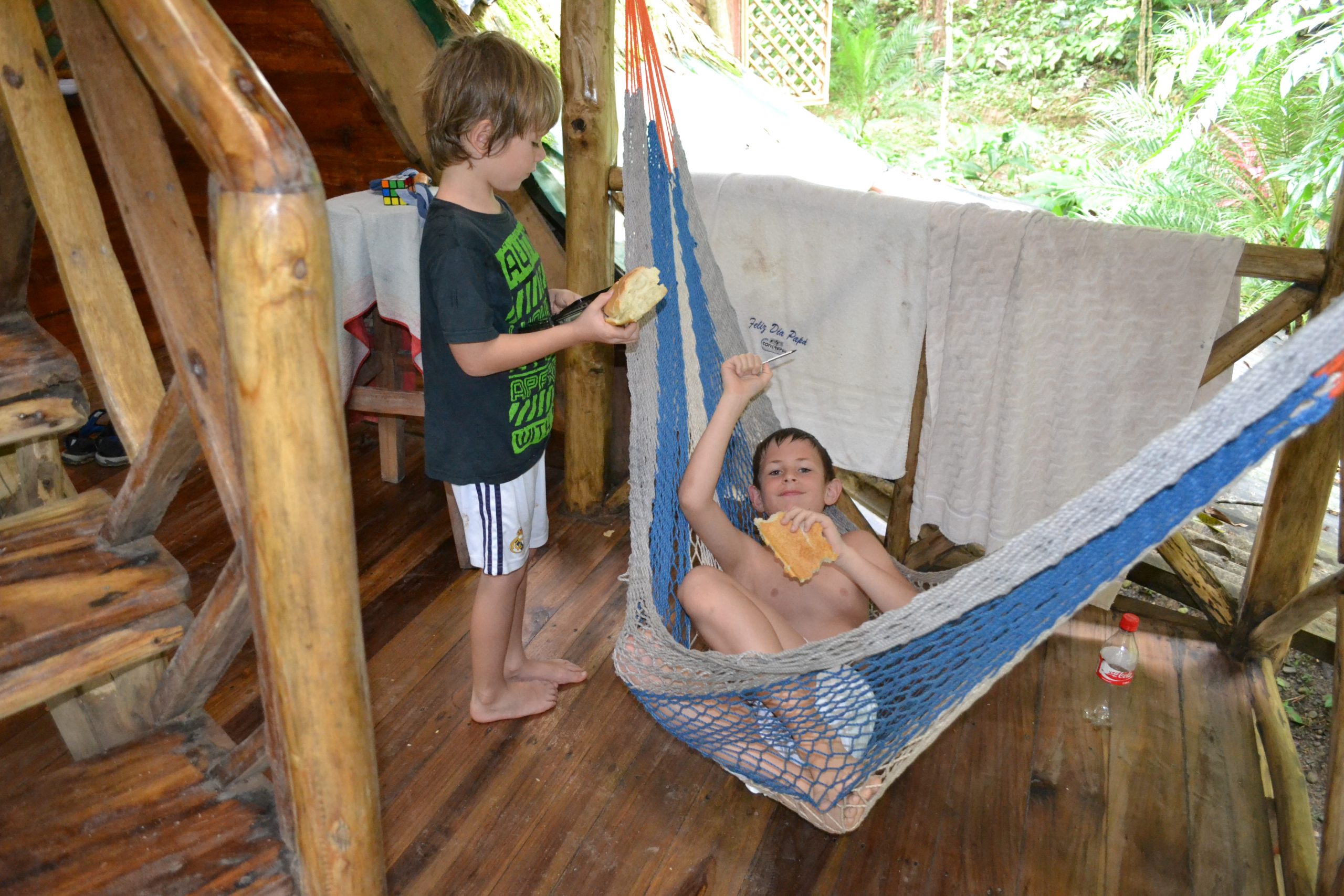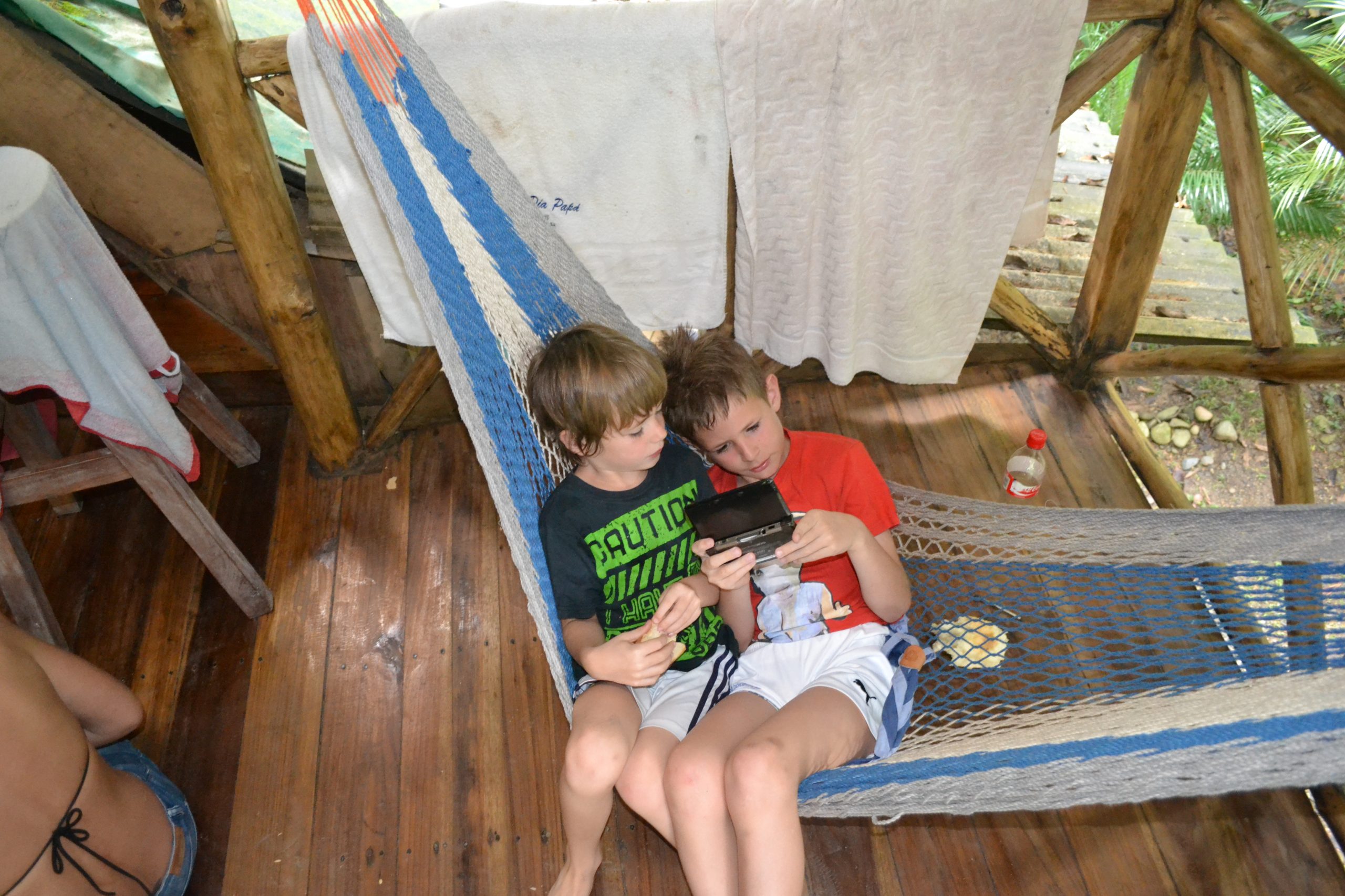 Ligesom Karl og Johanne gjorde med deres mor og far for 5 år siden, tager vi bussen rundt i Costa Rica. Der er gode forbindelser og det koster maximalt 12 dollars ligegyldigt hvor langt du skal. Det er også sjovere, for så møder man en masse lokale mennesker. Derfor sidder vi kl. 9.30 den følgende dag i en firhjulstrækker med aircondition på vej mod den Caribiske kyst. Hvornår i processen bussen blev til en bil, ved Mads og jeg ikke helt, men det virker meget logisk, da vi triller ud fra San Jose og mod Manzanillo. Bertel og Rasmus er på plads bagi ligesom for 2 år siden i USA. Spillene er de samme og gensynet er kært. Mario Brødrene og Pixeline (til 4 år). Vi har suppleret med Phenias og Ferb samt Lego Movie, men de gamle spil er bare bedre, mener et par nostalgiske drenge.