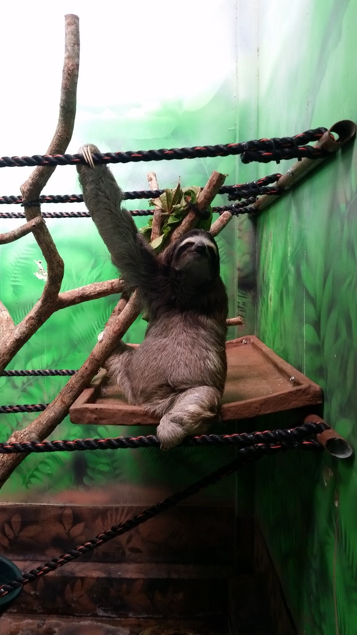 På vejen videre tager vi et stop for at se på dovendyr. Det er et familieejet reservat og Pete, som står i butikken er tredje generation. Hans farmor og farfar startede egentlig butikken med at redde farlige dyr så som jaguar og ørne, men som Pete selv fremhævede, så blev det rarere at redde søde og mindre farlige dyr efterhånden, som bedsteforældrene blev ældre, så det er det, de gør i dag. I reservatet bor 184 dovendyr. De der kommer ind ældre end 1 år, kan rehabiliteres og vende tilbage i naturen, mens de helt små er nødt til at blive i reservatet for livstid. Det er ikke muligt at oplære babydovendyr til et liv i naturen.