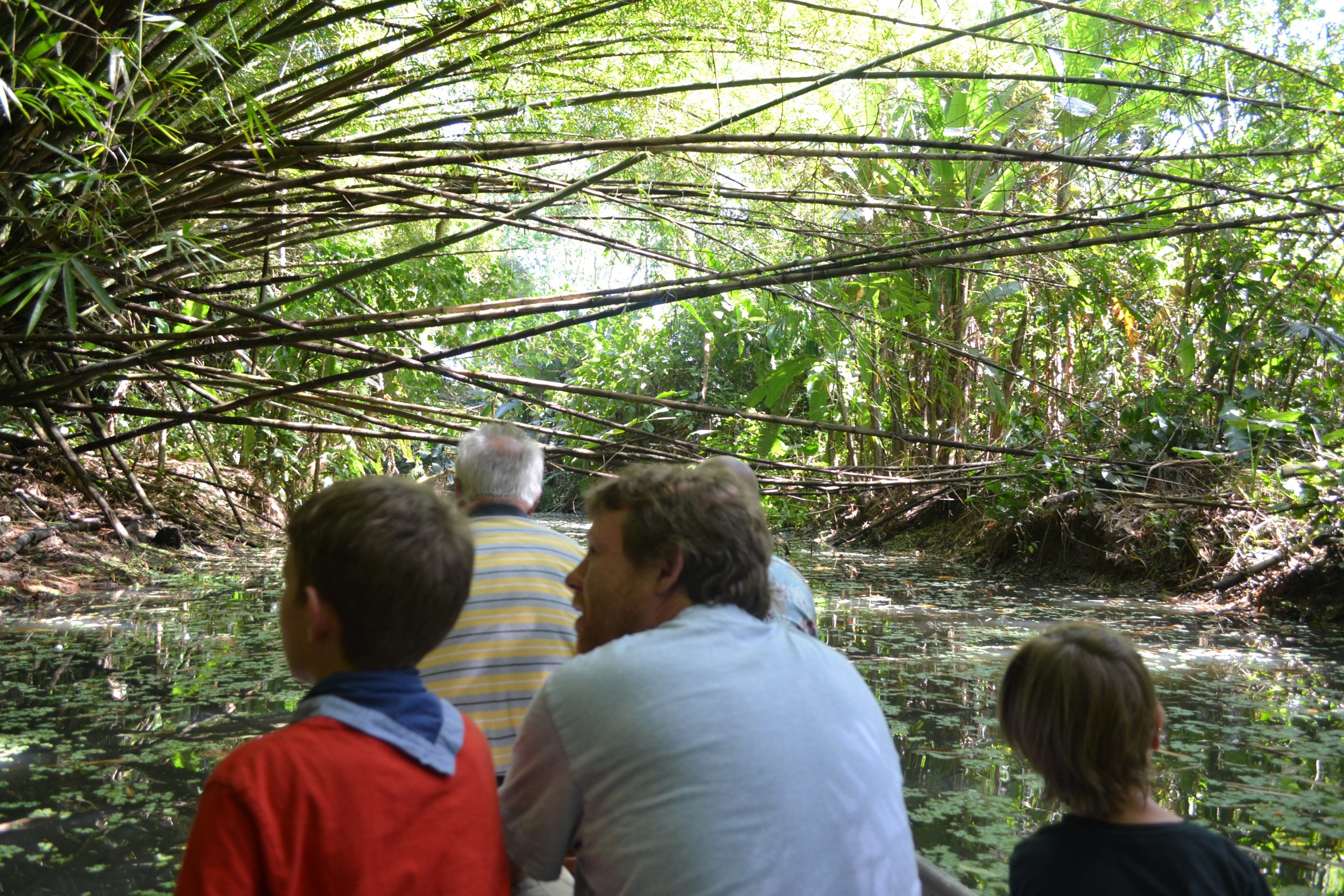 Vi er også på en bådtur gennem reservatet med den tavse guide. Han siger absolut intet i den time, turen varer. Men hans telefon ringer højt og inderligt, mens vi prøver at opretholde illusionen om vores ensomhed i den dybe jungle. Her er både kaimaner, kæmpeleguaner, flagermus, dræbermyrer og dovendyr. De hedder sloths og ikke Desmonds (ifølge Mads).