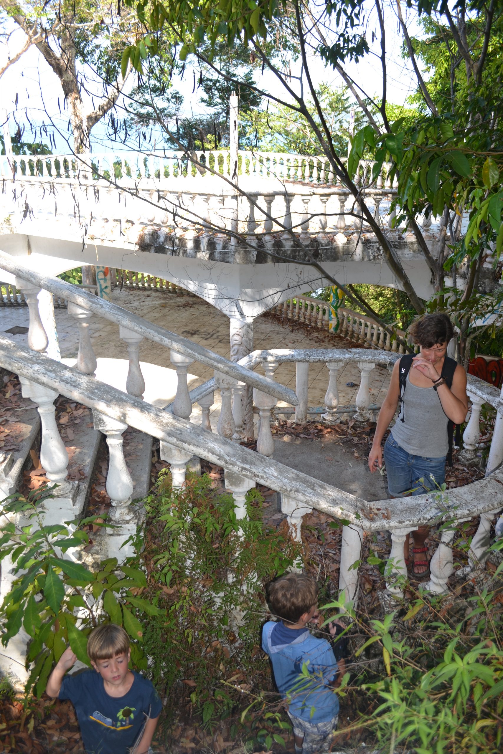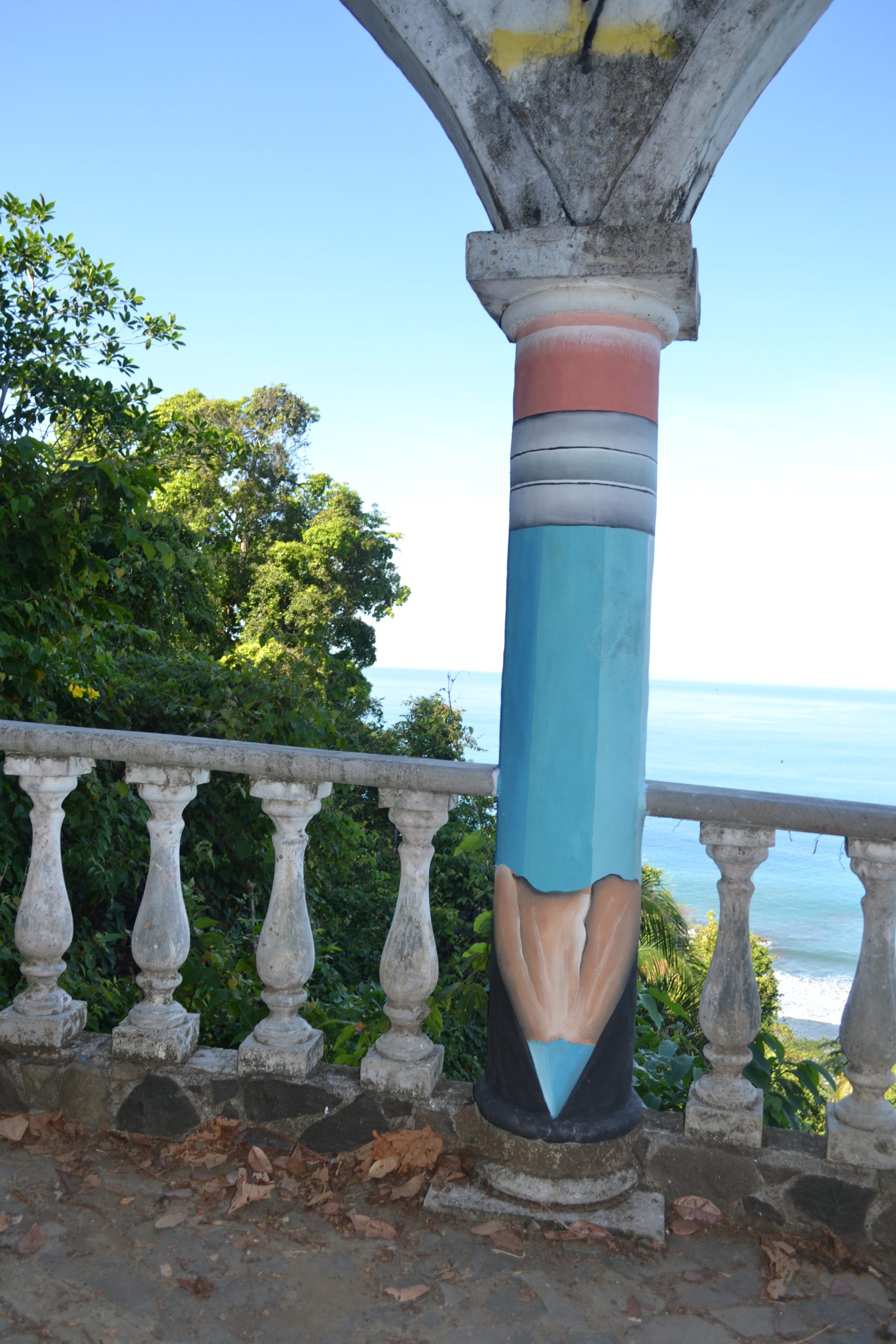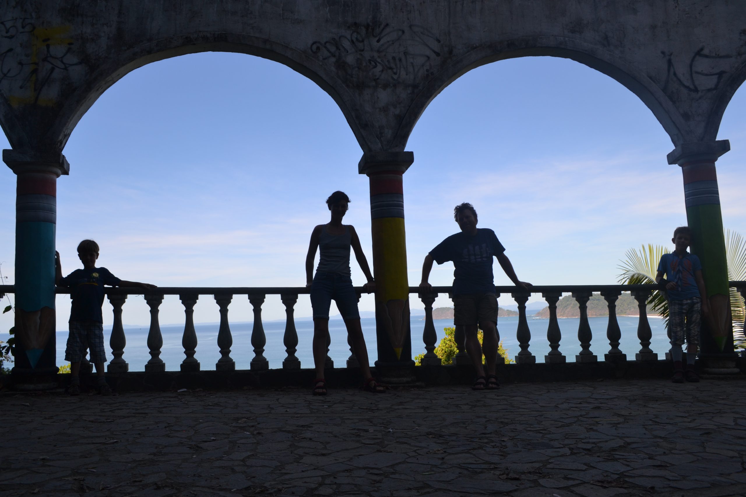Vi vandrer op ad en lang buet indkørsel. Hotel Muriel skulle have været drømmen af et hotel i Jacó med den allerbedste udsigt, men investoren fra USA døde midt i forløbet og i 2007 var der ikke nogen, der ville overtage den forretning. Derfor står halvdelen af hotellet ufuldendt tilbage, men vi kan godt se, hvad drømmen var. Nu bliver det brugt til reflektions- og udflugtsmål.