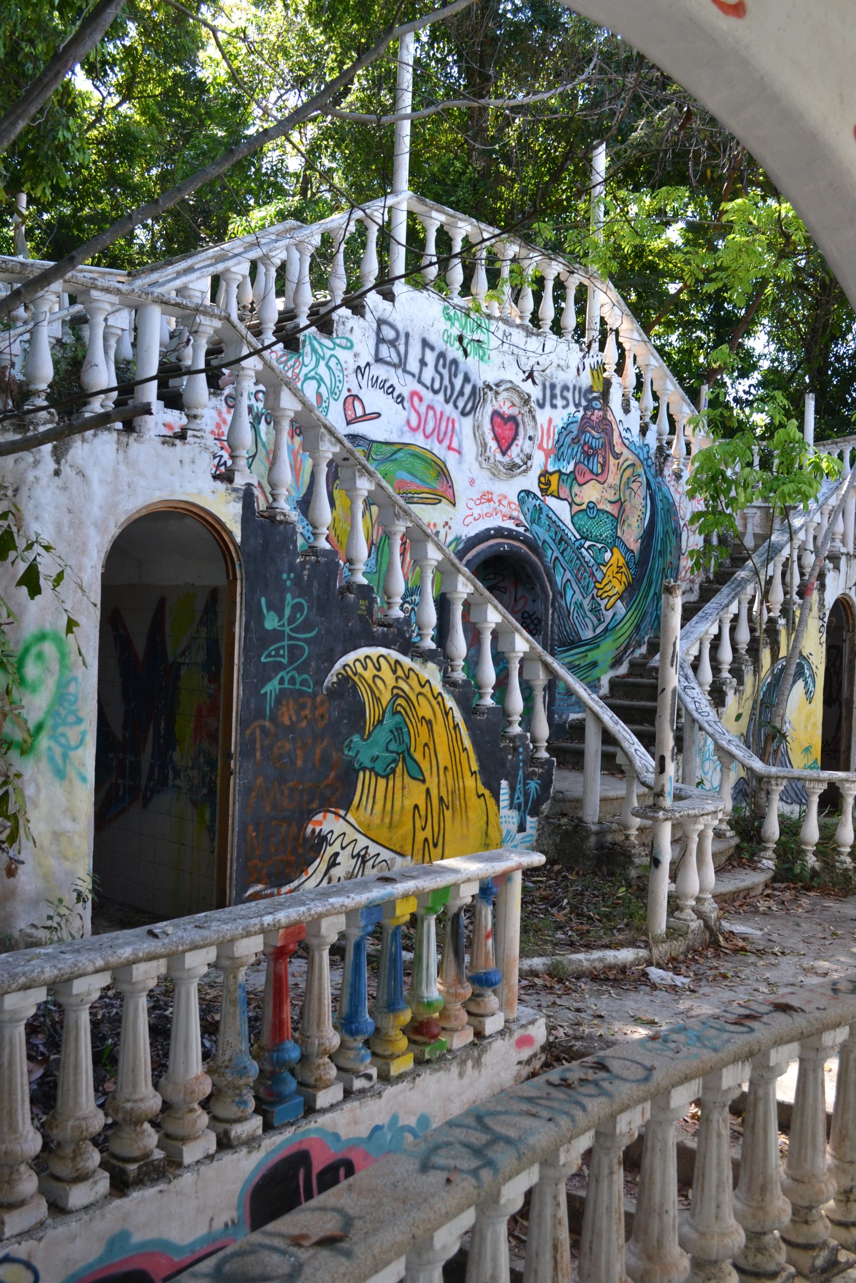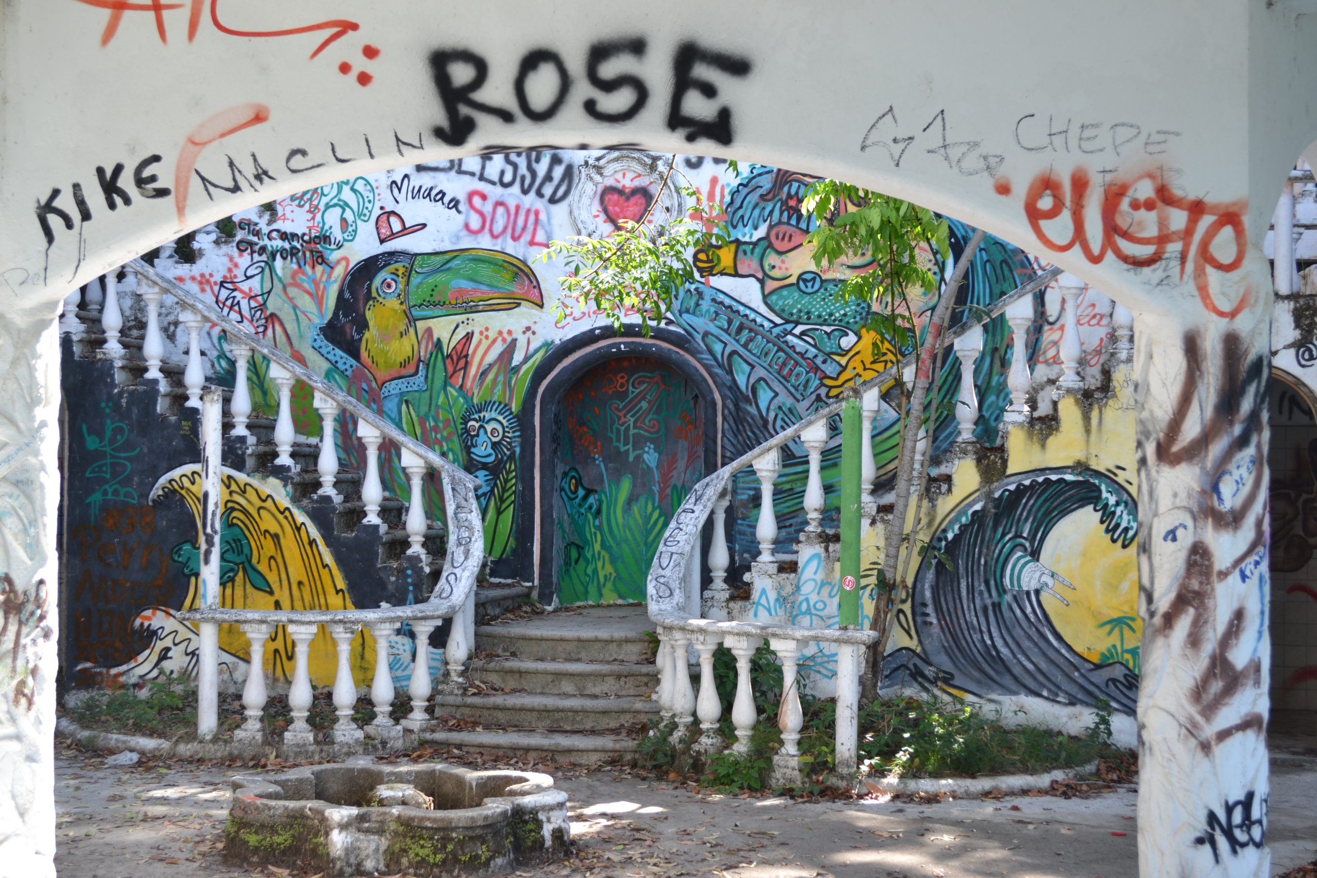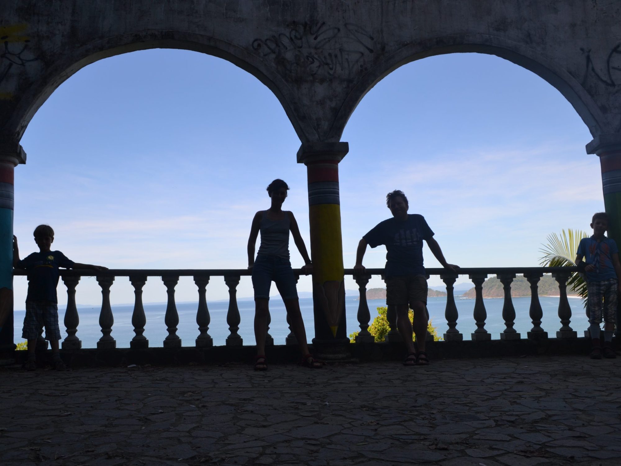 Vi vandrer op ad en lang buet indkørsel. Hotel Muriel skulle have været drømmen af et hotel i Jacó med den allerbedste udsigt, men investoren fra USA døde midt i forløbet og i 2007 var der ikke nogen, der ville overtage den forretning. Derfor står halvdelen af hotellet ufuldendt tilbage, men vi kan godt se, hvad drømmen var. Nu bliver det brugt til reflektions- og udflugtsmål.