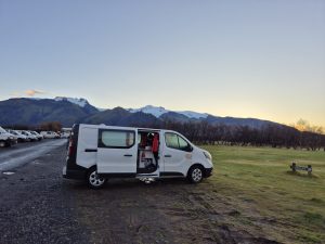 Sidst på dagen begyndte vi at lede efter en campingplads. Den, vi havde regnet med at bruge, var helt fyldt, og vi stod et øjeblik og vidste ikke helt, hvad vi skulle. Til sidst besluttede vi at køre tilbage til Selfoss og få varm pizza på et lille streetfoodlignende sted. Herefter fandt vi den campingplads, vi var kørt efter, og vi faldt hurtigt i søvn efter en lang og fantastisk dag.