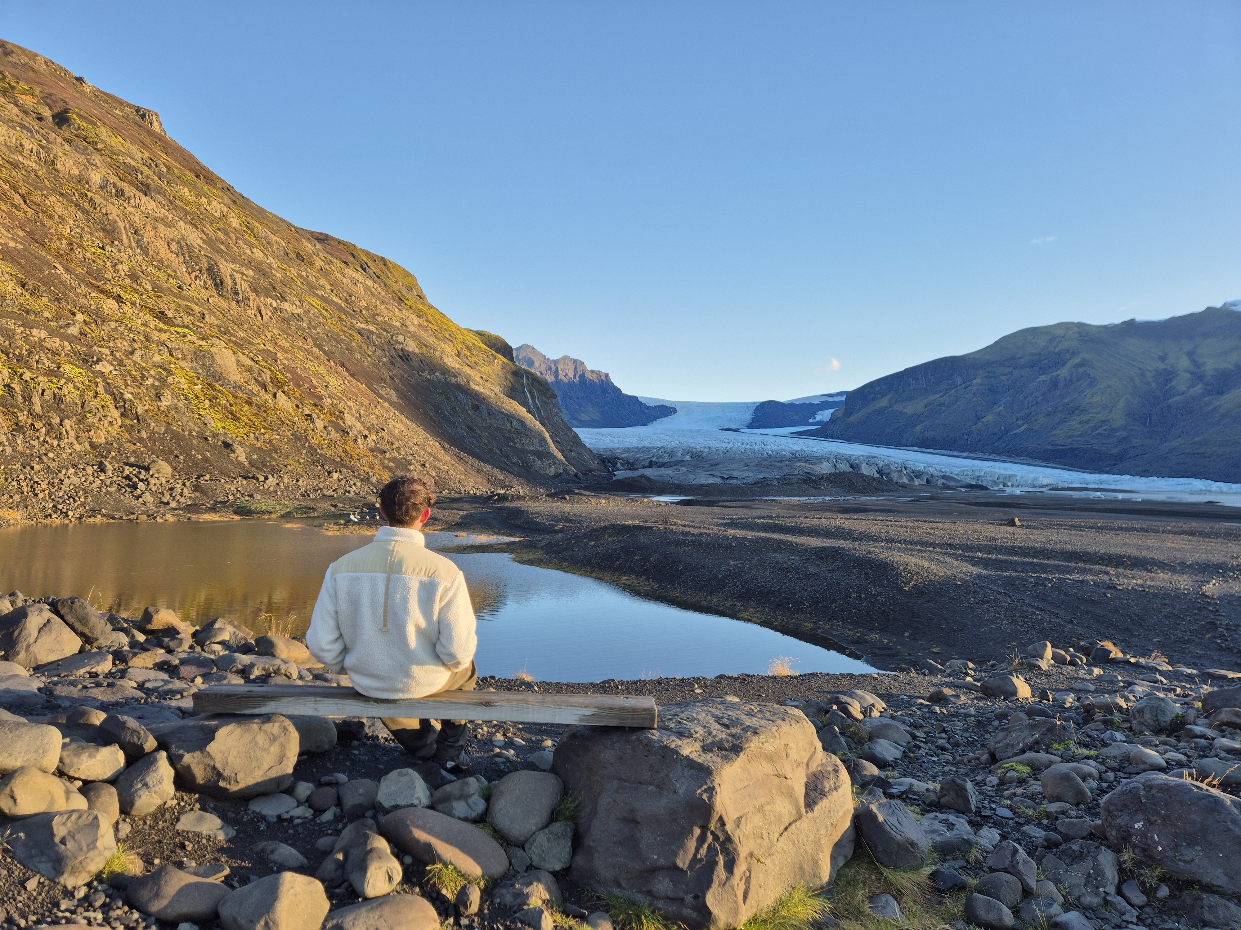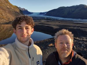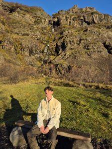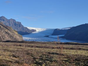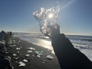 Vi startede dagen tidligt i Fagurhólsmýri, hvor vi tog hen for at se gletsjeren i morgenlyset. Der var stille, koldt og klart, og gletsjeren lå foran os som et massivt blåt landskab, der nærmest virkede uvirkeligt. Vi gik rundt et stykke tid, tog nogle billeder og nød, at vi havde stedet næsten for os selv.