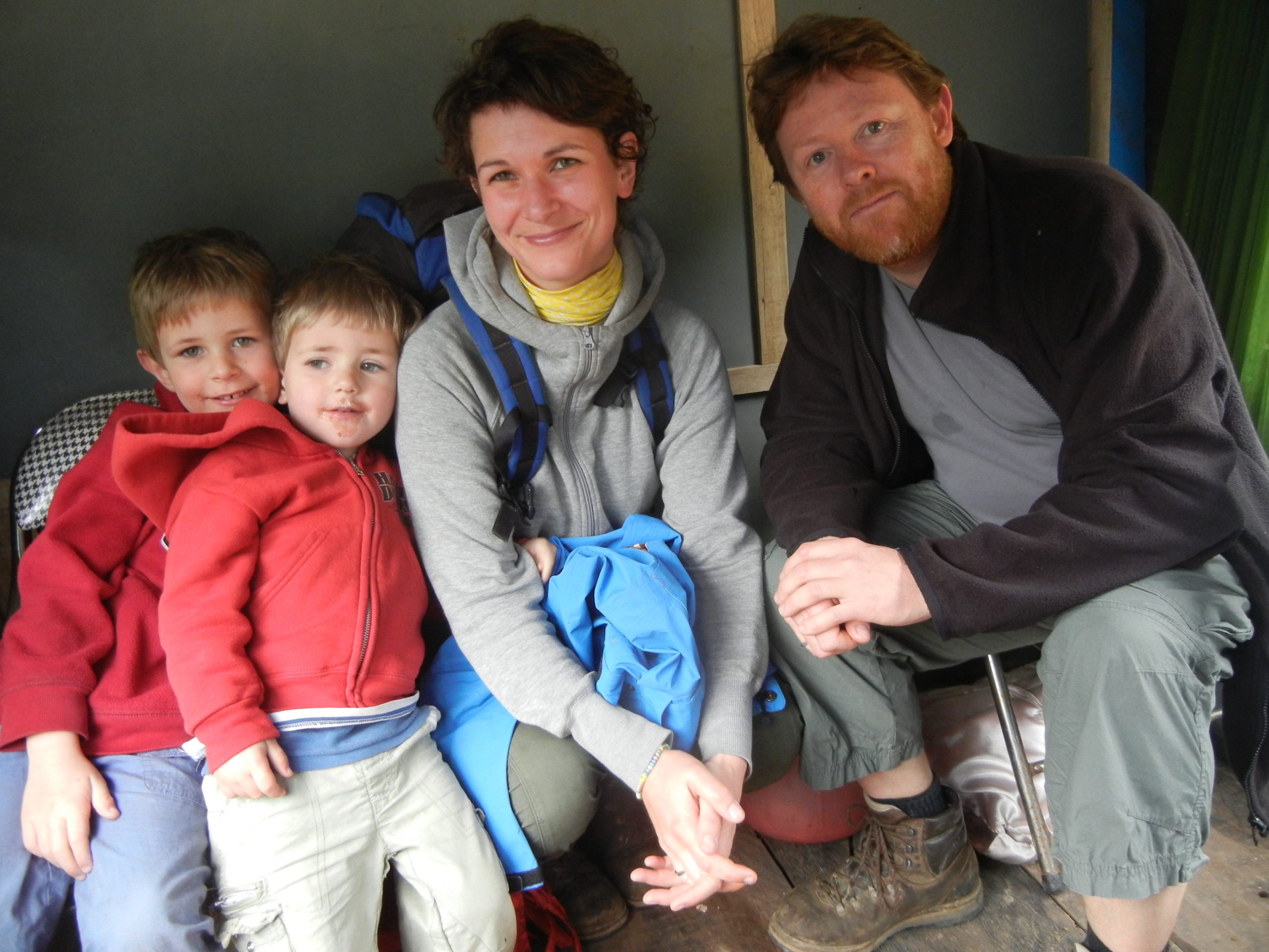 Himlen er graa og det regner. Vi er meget taknemmelige for vores danske solide regntoej.