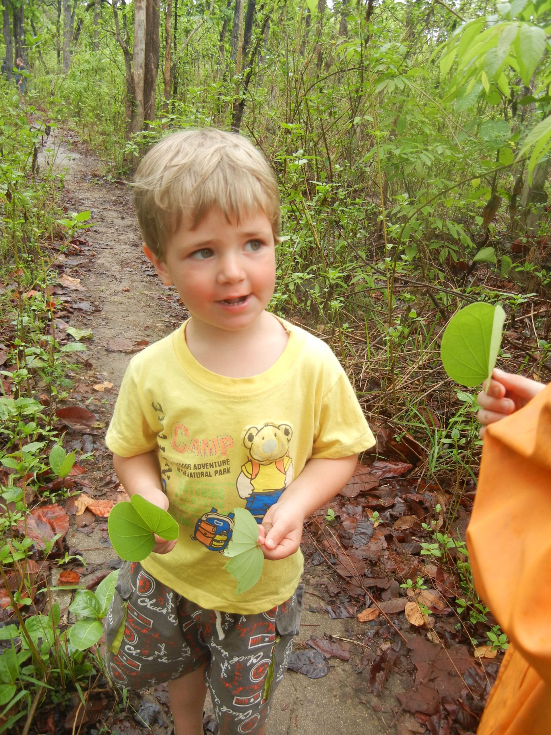 I Yok don fortaeller parkrangeren om dyr og planter. Tigre, bjoerne og de sidste 35 vilde elefanter er trukket ind om graensen til Cambodia, saa dem skal vi nok ikke forvente at se. Der hvor vi er, kan man til gengaeld se dronninge- og sort kobra. Vi naar dog ikke saerlig langt, inden vi faar det foerste vilde dyr at se. En 15 cm lang bufas af et tusindben er ogsaa paa vandretur og den er ogsaa meget mere spaendende end en tiger, synes drengene, som klapper og kaeler med den vilde fyr.