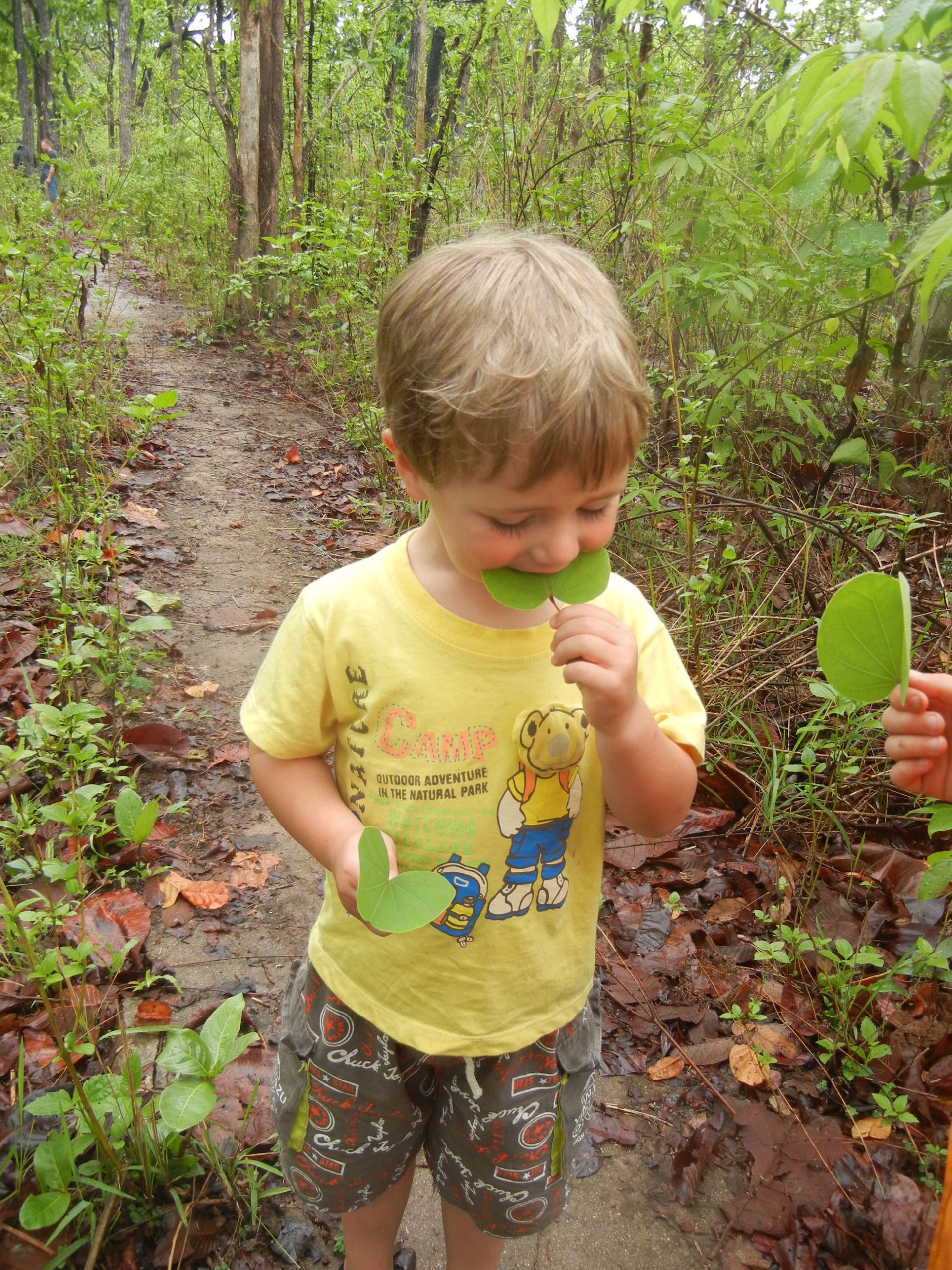 I en mangroveskov spiser vi frokost og loeber over utallige haengebroer. Vietnameserne faar nervoese tics af vores boern, der faar lov til at loebe over broerne selv og vi maa mange gange berolige bekymrede mennesker om, at drengene skam sagtens kan klare sig selv. Skovboernehaveboern er ikke saadan at vaelte af pinden, hvilket vi hver eneste dag bliver forsikret om af vores nysgerrige aktive drenge.