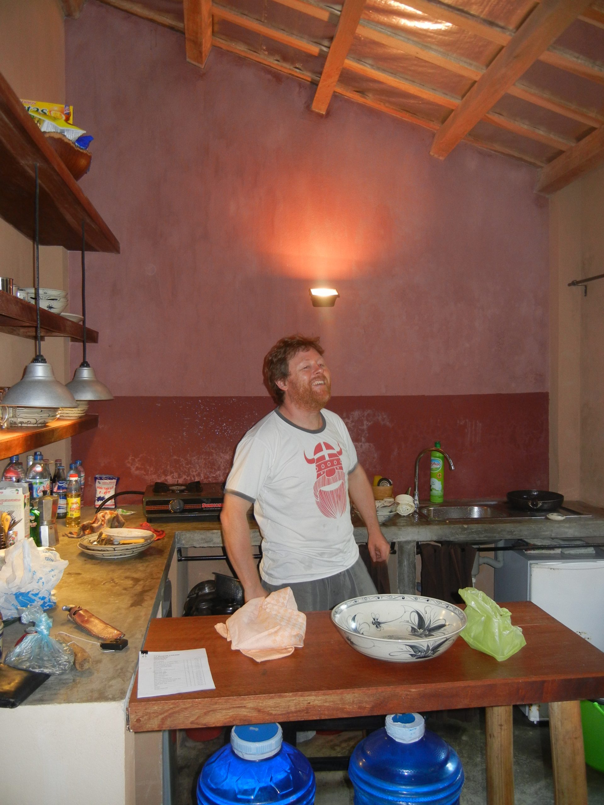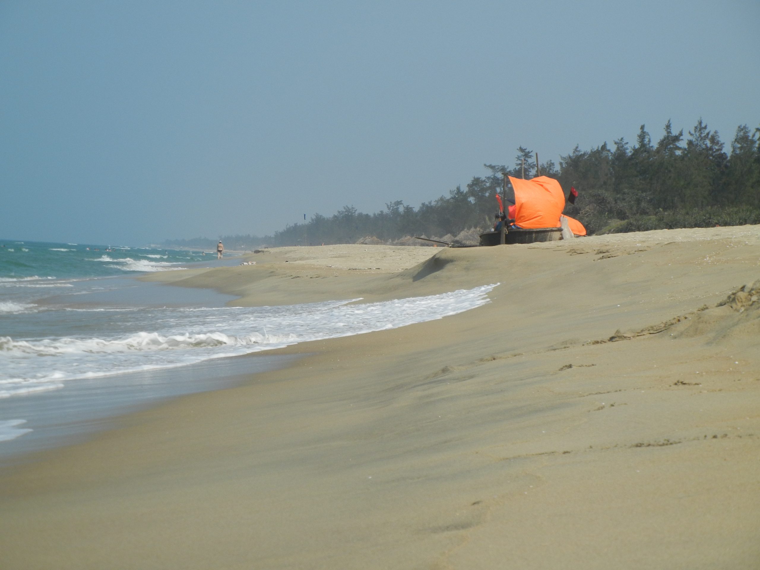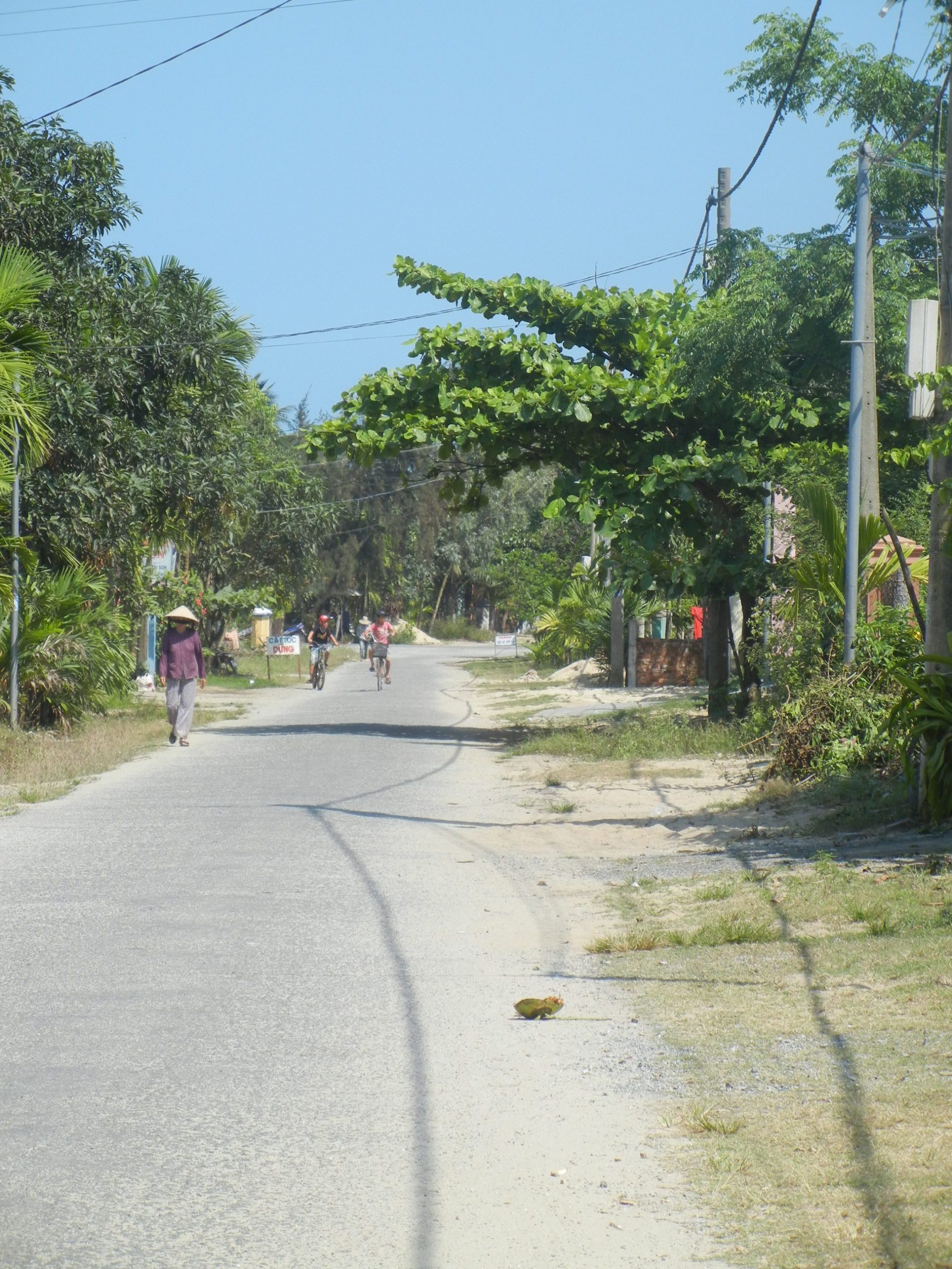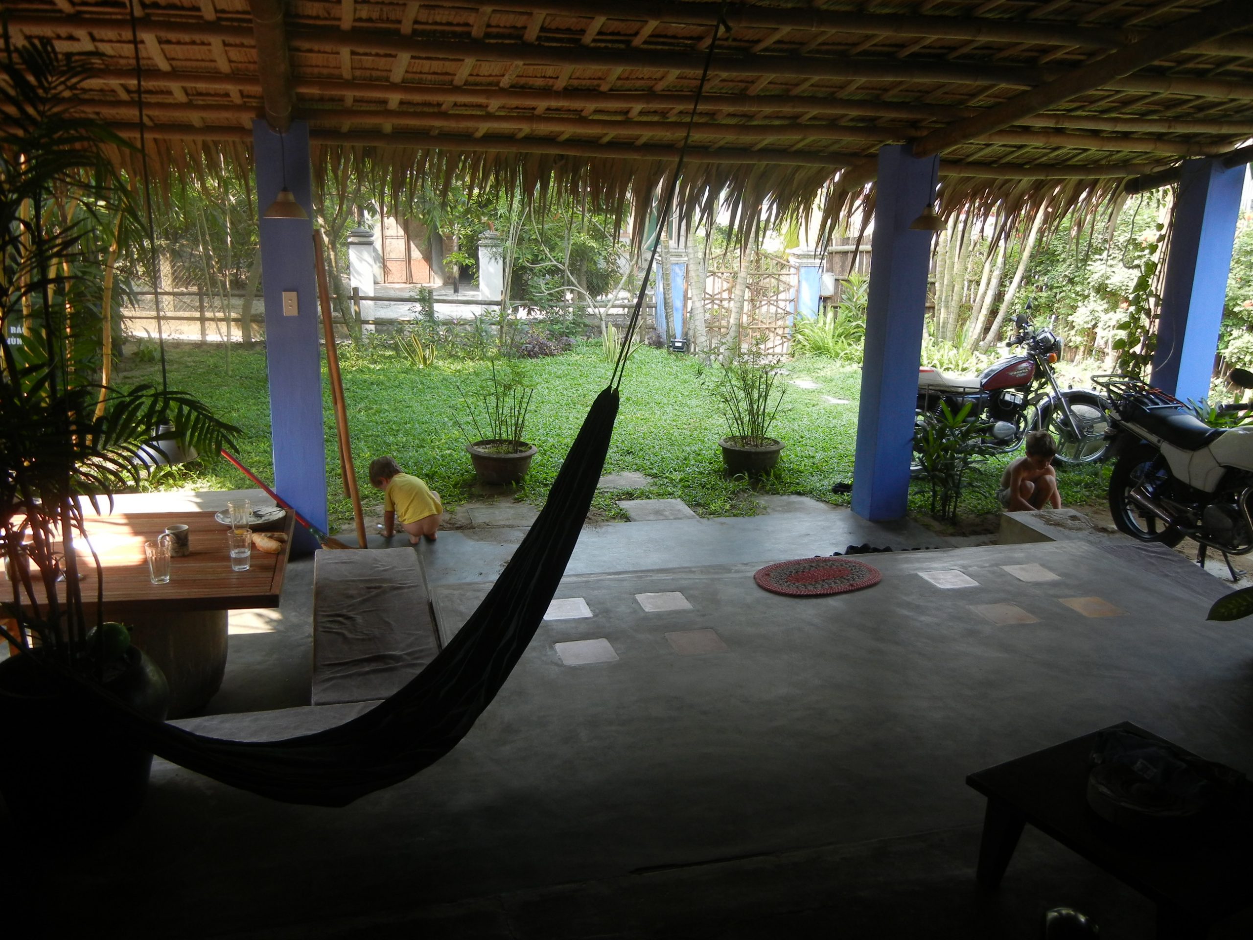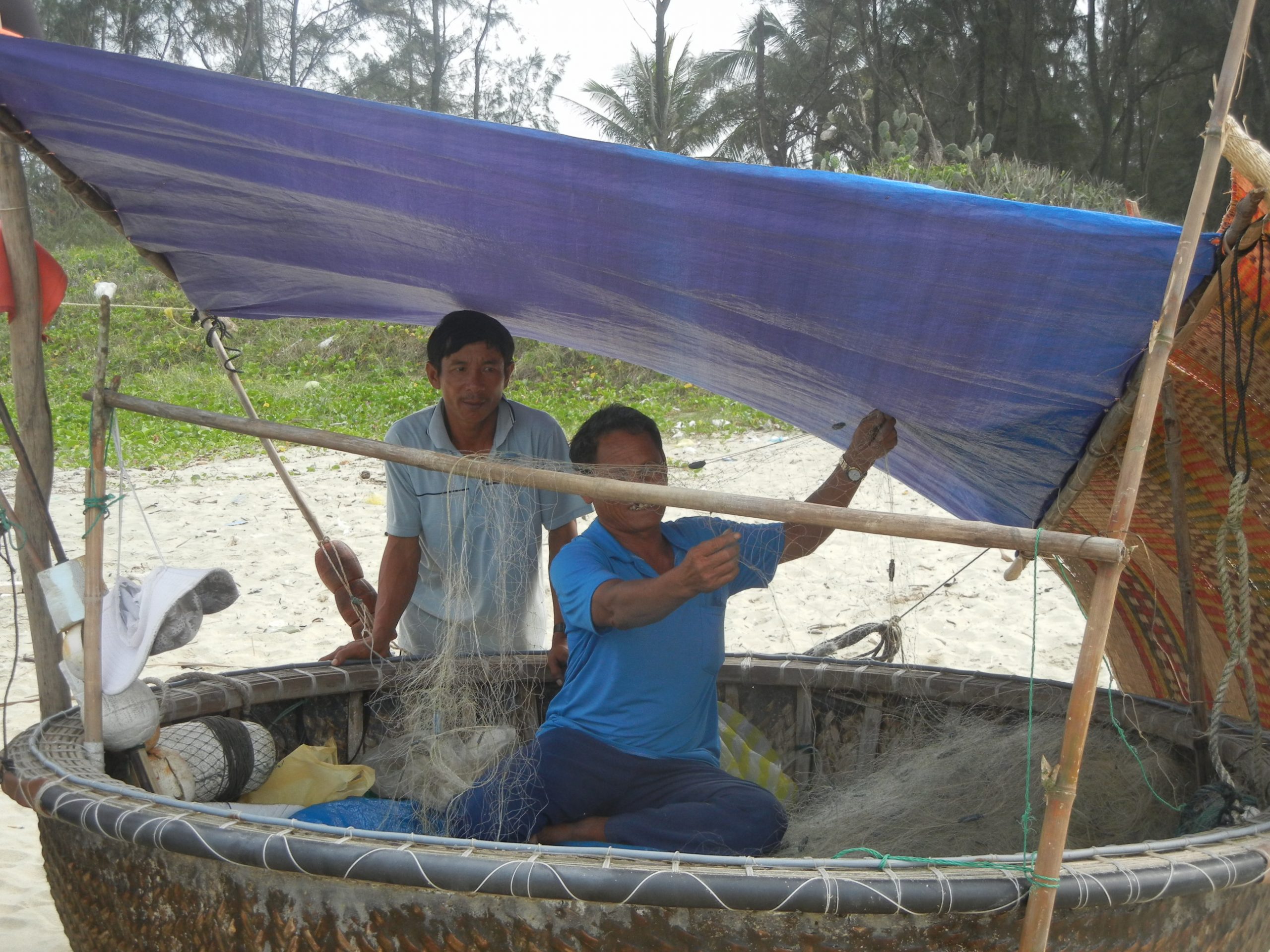 Paradis skulle have ligget her. Vi bor i et lille hus paa An Bang Beach midt i en fiskerlandsby. Vandet er blaat, saa blaat, – og salt. Stranden er oede paa naer fiskerne, som saetter ud tidlig morgen og som om eftermiddagen hilser paa os, naar vi gaar langs stranden. De boeder garn og sidder ved siden af deres cirkelformede sivbaade.