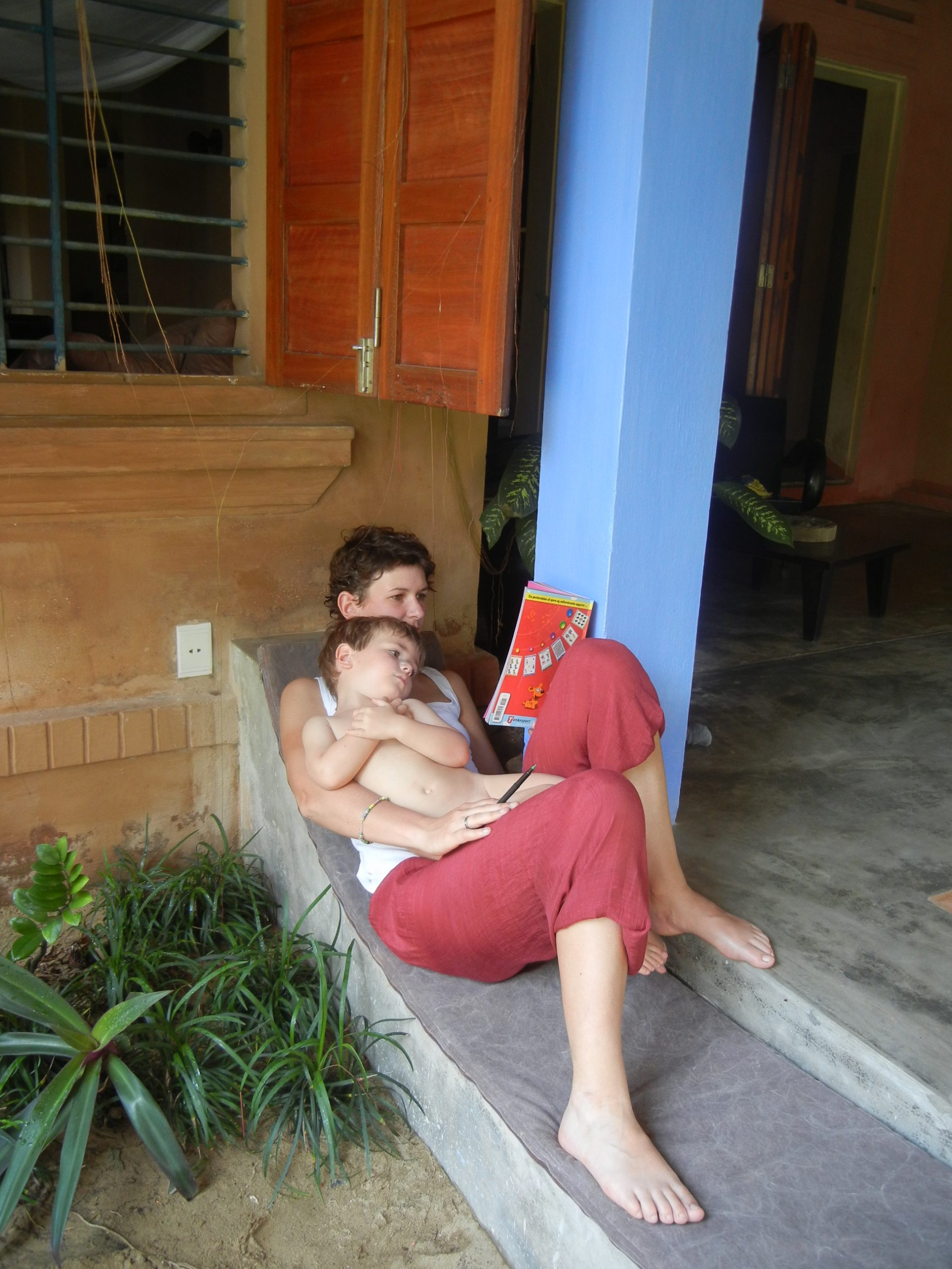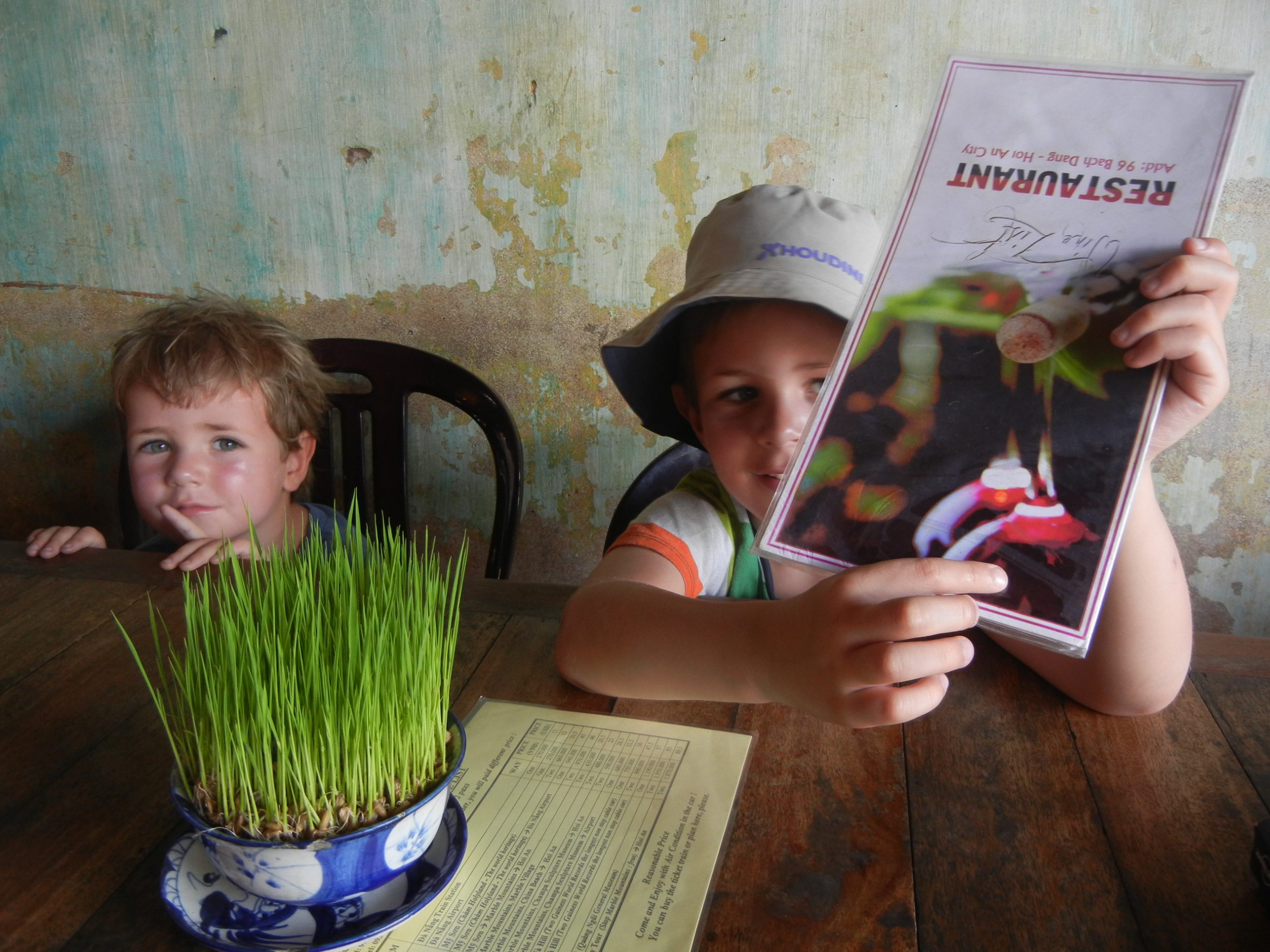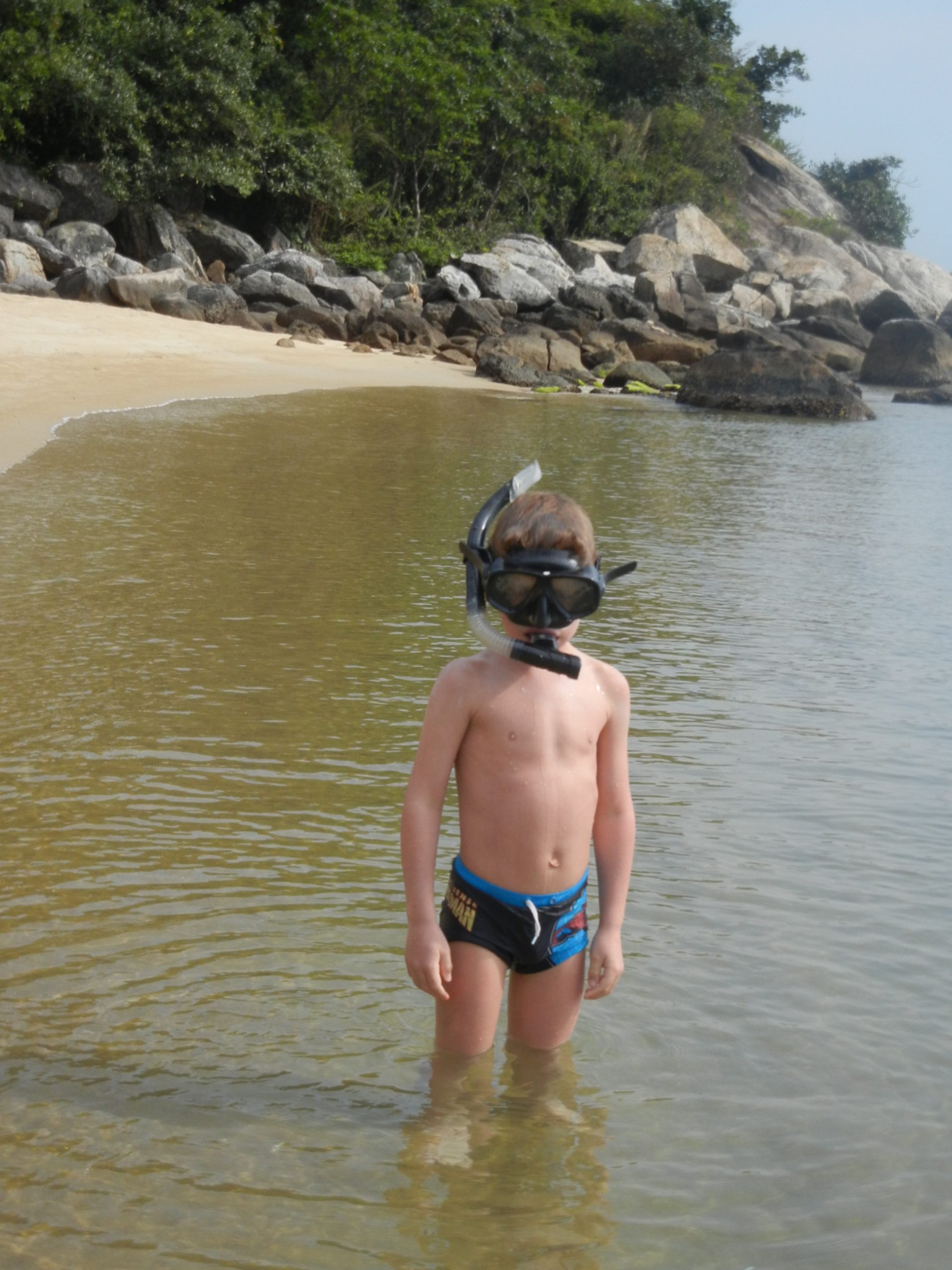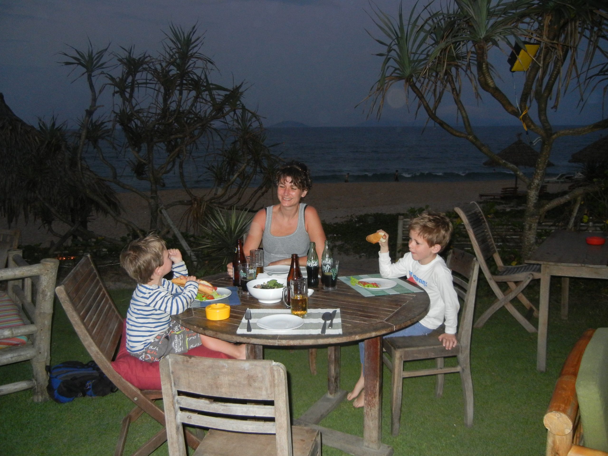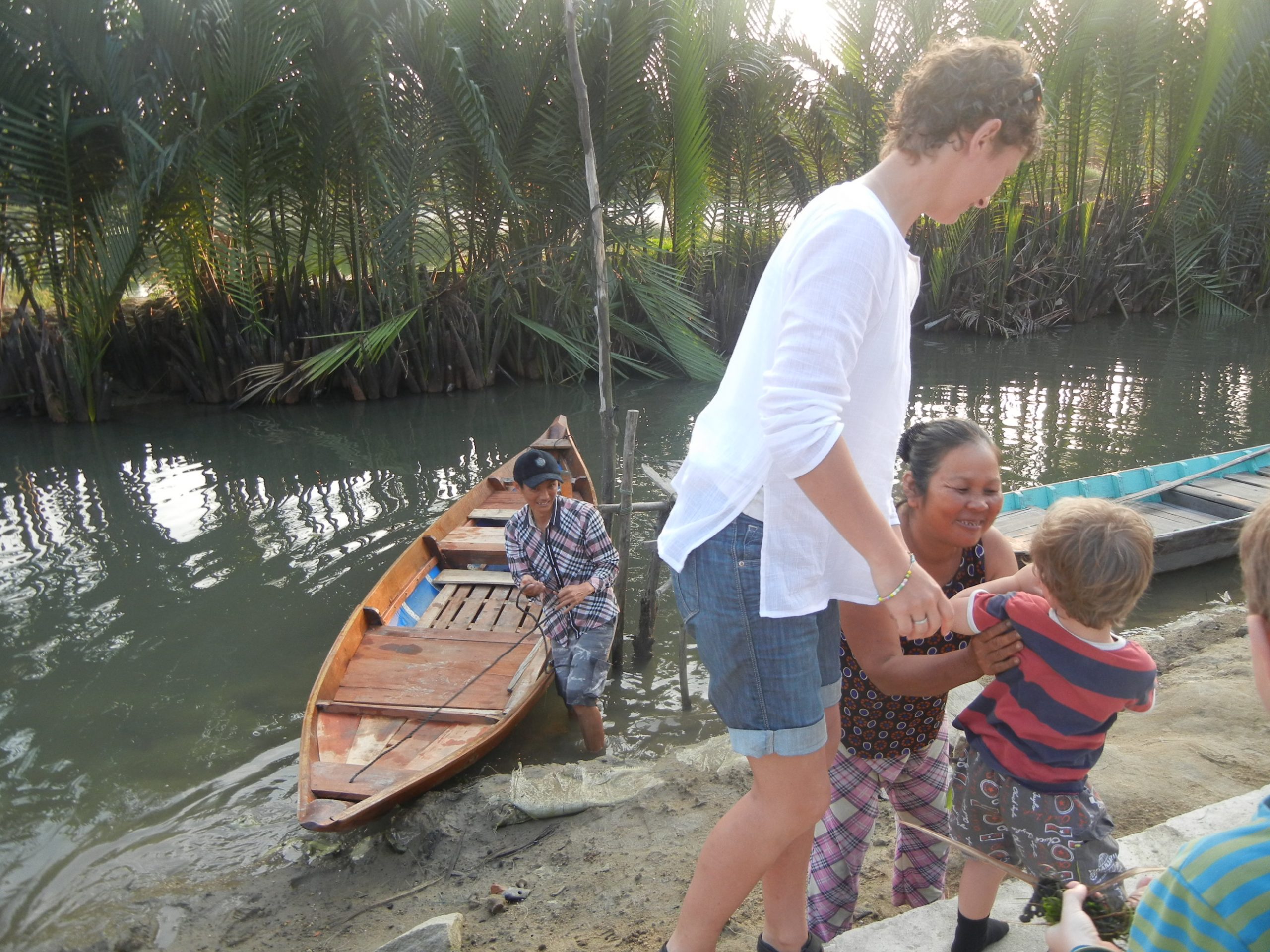 Vi tilbringer resten af eftermiddagen med at lege, spille bold og snorkle ved oeen, som er omend endnu mere postkortagtig end vores egen strand ved An Bang beach. Drengene falder i soevn paa baaden og vi faar talt baade fransk, tysk og en smule vietnamesisk inden vi hanker op sovedyrene og finder vej hjem. Der er mange som Luigi, der haar slaaet sig ned her i hoi An og det nyder vi godt af om aftenen, da vi spiser en rigtig aegte italiensk pizza. En rigtig god slutning paa en skoen dag bliver vi enige om alle sammen.