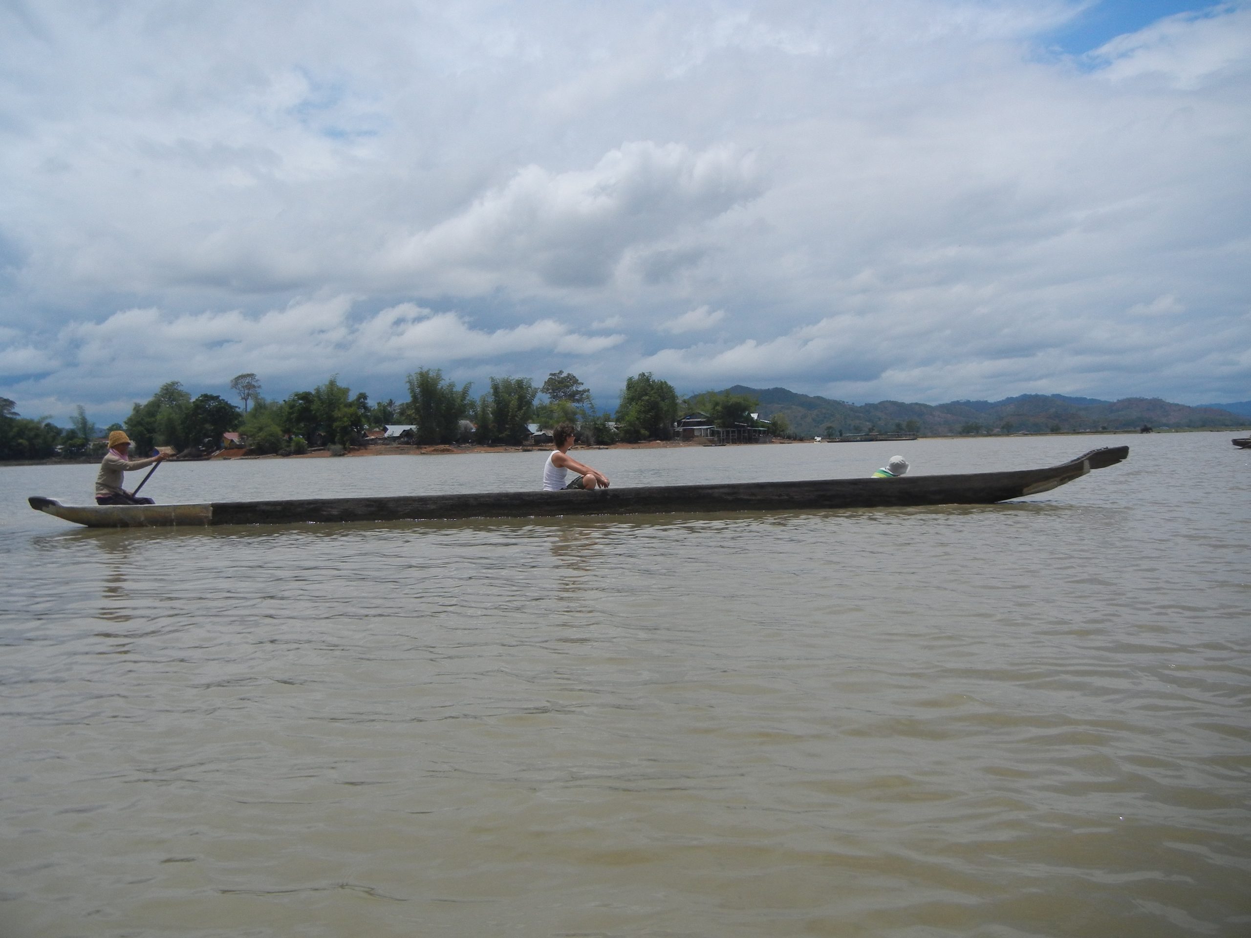 Efter en skoen frokost i landsbyen tager vi en sejltur paa soeen i 2 langbaade, hvor der er plads til 8 i hver. Sam har booket forkert og vi naenner ikke at skuffe den soede gamle stagedame i den ene baad ved at insistere paa at sejle i en baad, saa vi tager dem begge to og saa faar Rasmus lov til at stage sammen med damen, som er ellevild med lyst haar og hud ogsaa, for hun aer Rasmus hele tiden.