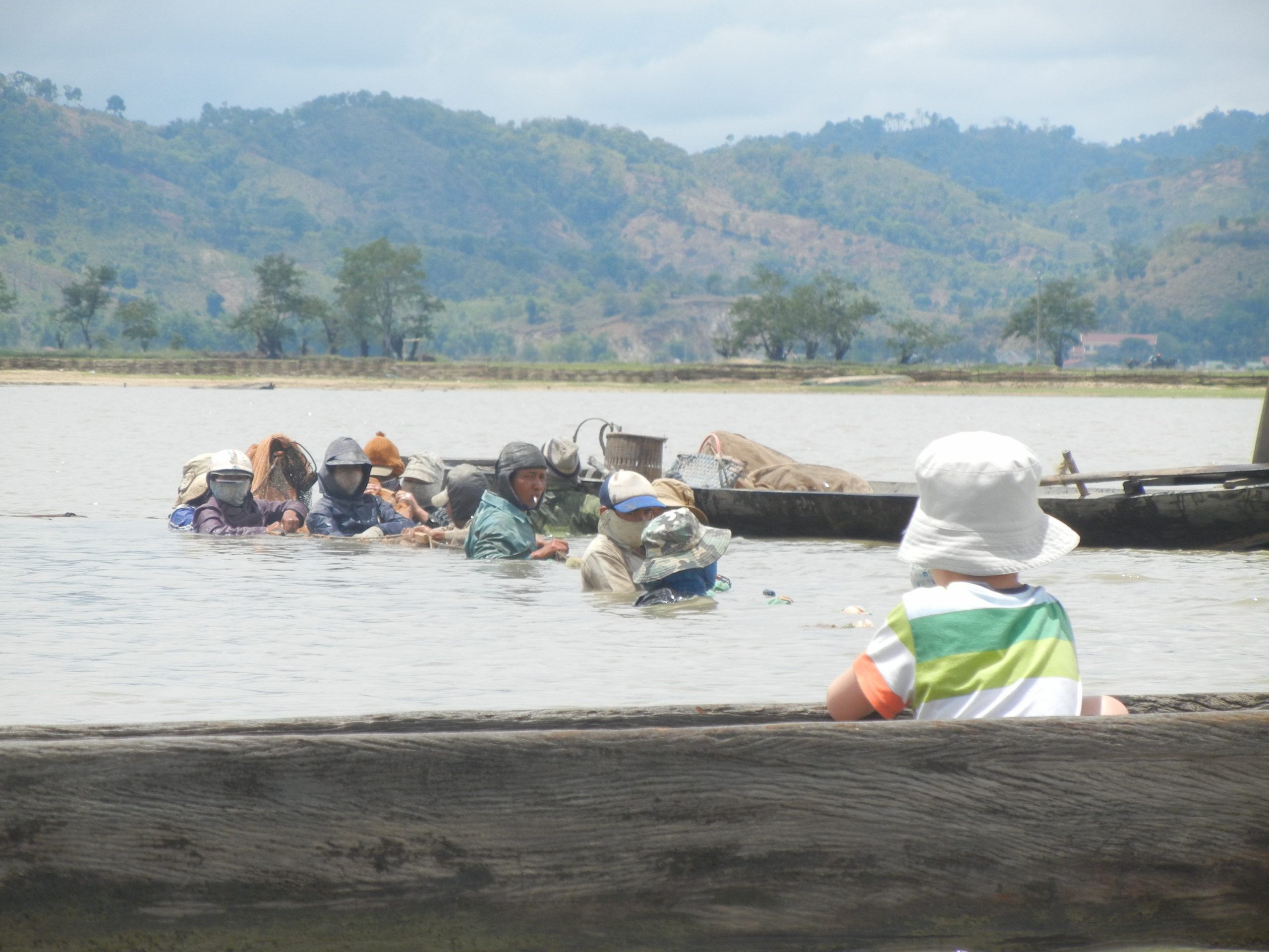 Midt i regnvejret er Lak Lake en oase med skinnende sol og vi nyder varmen. Elefanten derimod vil helst helt ned under vandet, hvor den baade laver det ene og andet. Drengene foelger med stor interesse med i, hvad der kommer op af vandet. Det kan enten vaere lort eller en masse luft. Hvem gaetter rigtigt!