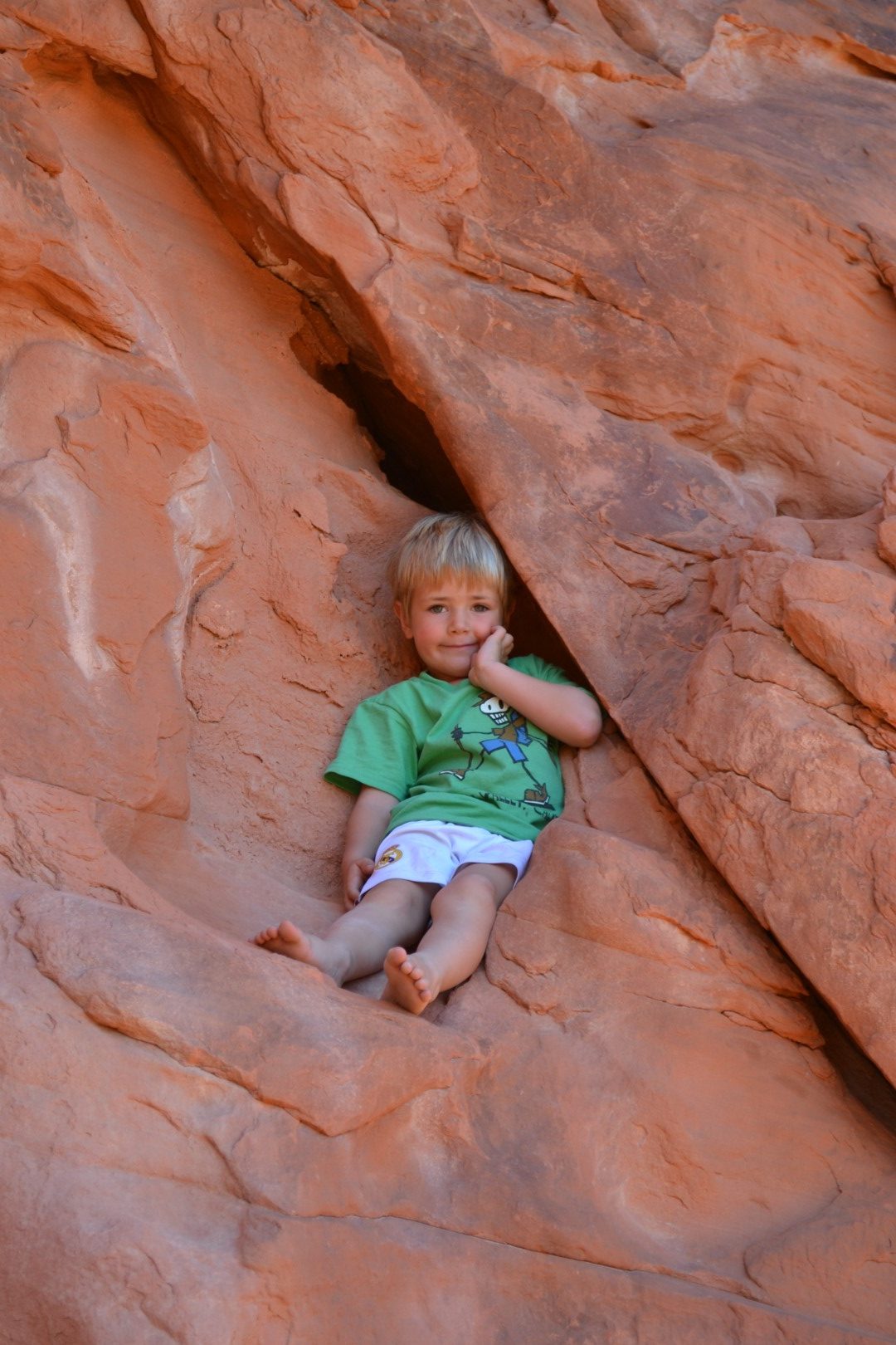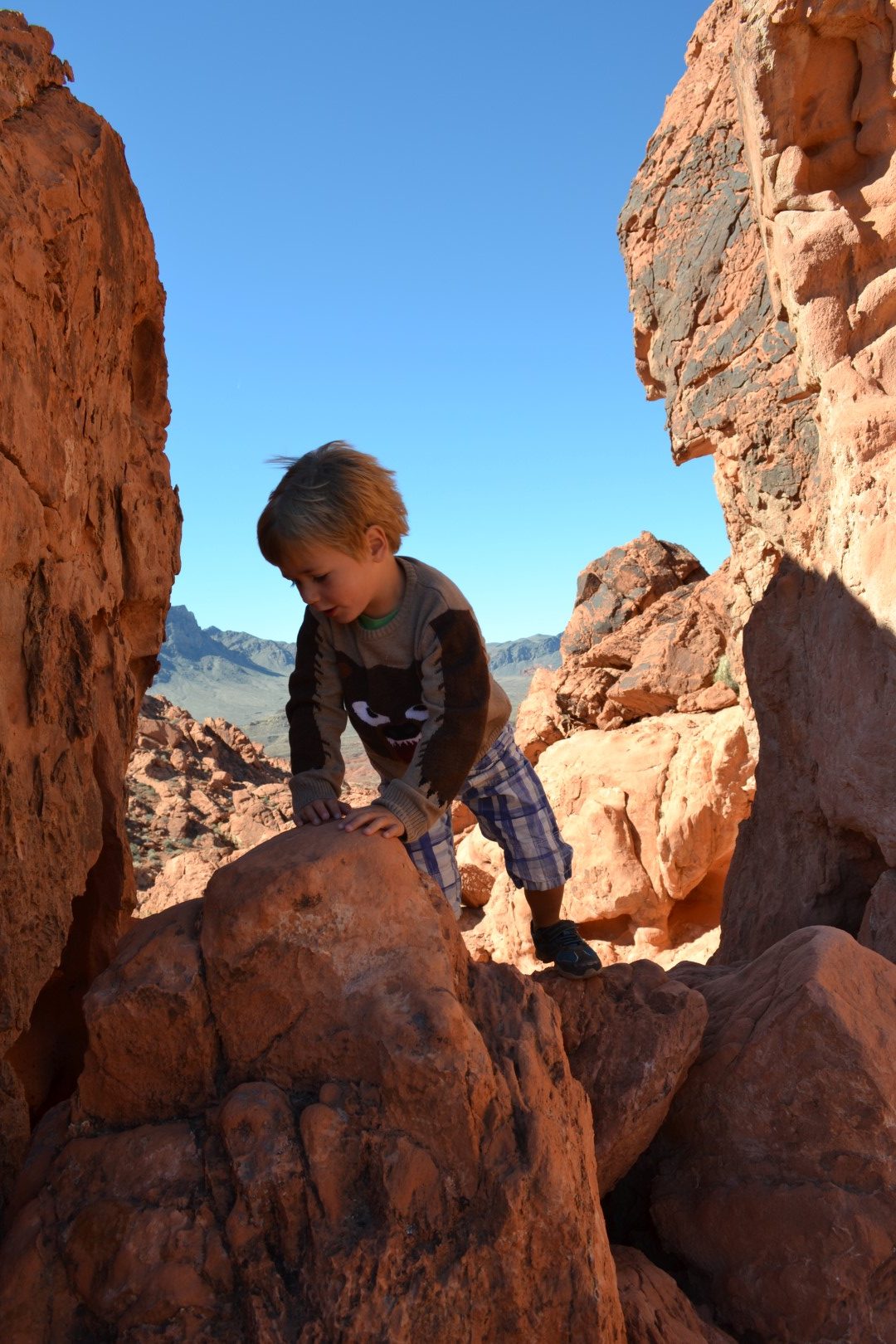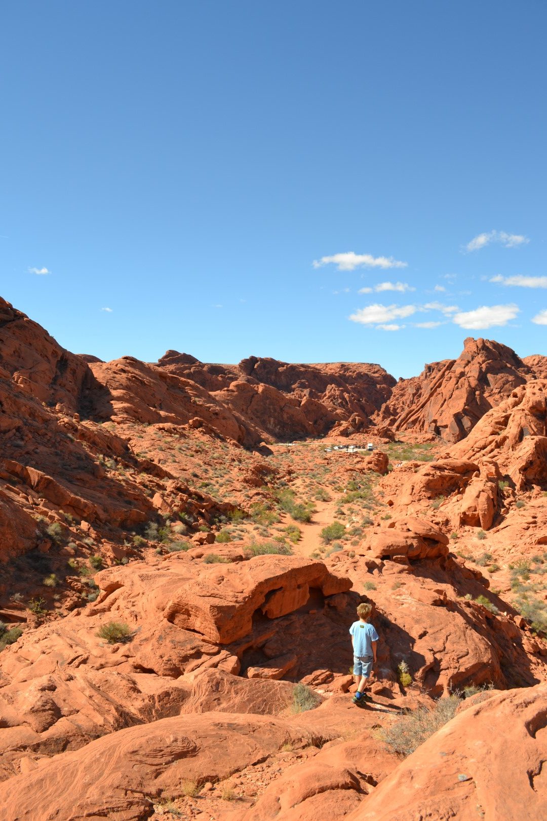 Vi tager derfor til Valley of Fire. Dalen har sit navn efter sine røde klippeformationer og ligner for os en mellemting mellem et marslandskab og en cowboyfilm.