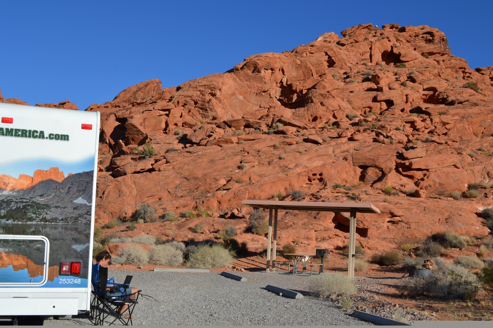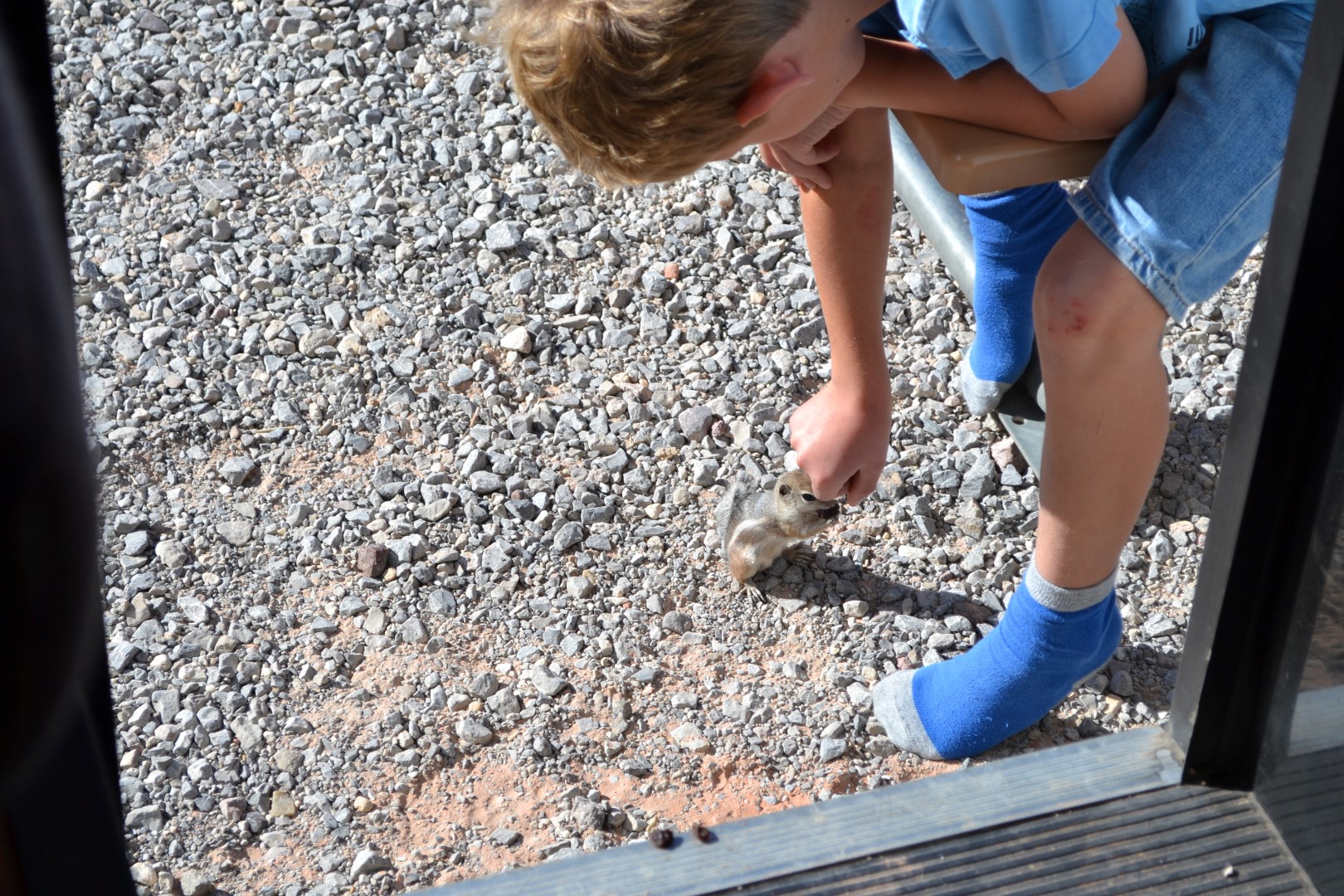 Mens vi spiser aftensmad på vores campground og solen går ned og farver klipperne lysende røde, hopper de små jordegern ind til os i camperen. De er vilde med rosiner og vil gerne tage dem direkte fra hånden. De er faktisk mere spændende end da vi så en bjørn. Og ligesom sidst vi rejste bliver vi mindet om, at det ikke nødvendigvis er i de store fysiske oplevelser, at fascinationen og mindet ligger gemt.