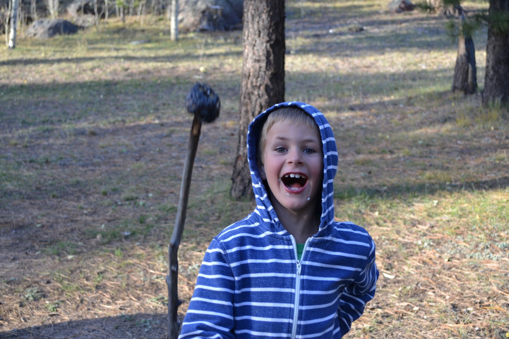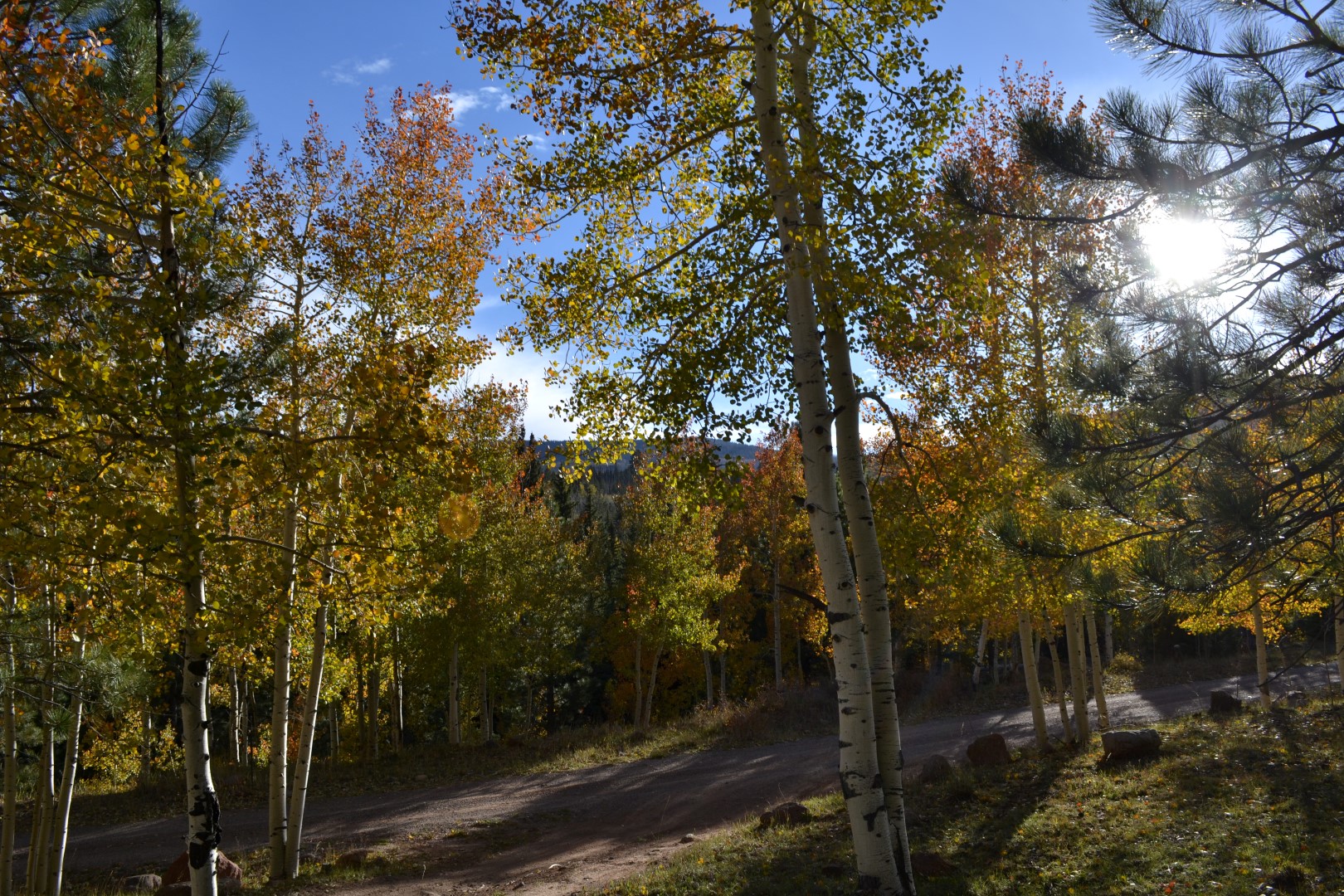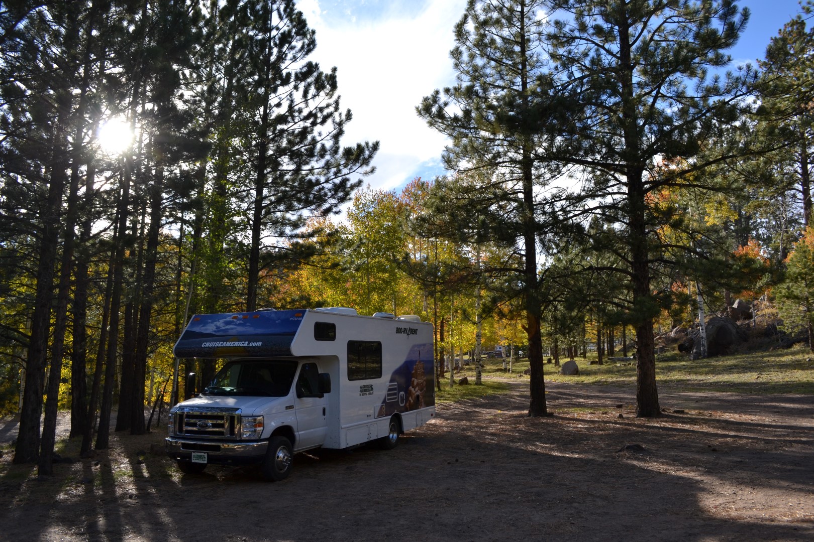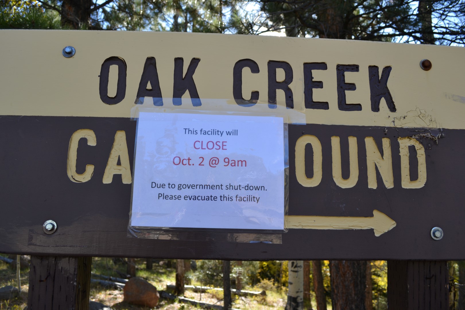 Heldet er med os endnu engang selv om vi har bevæget os ind i et nationalt skovområde. Denne gang finder vi en lille plads i en lysning på vejen ind til endnu en lukket primitiv overnatningsplads. Stedet hedder Oak Creek. Helt alene bliver vi dog ikke, for et ægtepar i en mindre van, har også fundet vej hertil. Så denne gang er vi to biler midt i et kæmpestort skovområde i 3000 meters højde. Vi har for resten også selskab af en lille flok sorte køer, som har lagt pæne kasser rundt i terrænet.