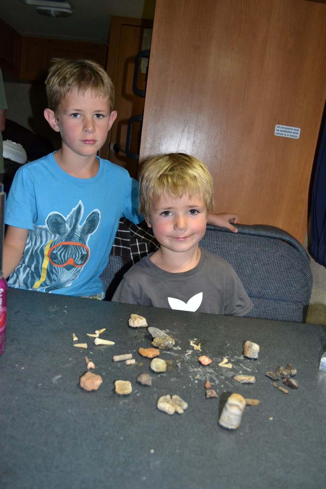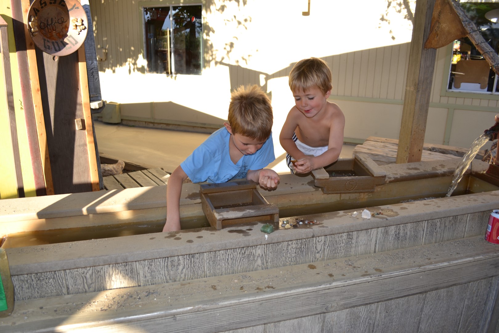 På vej ud af parken næsten morgen ser vi rækken af biler, der forgæves holder i kø på vej i til Seqouia. De må vende om og følges med os på vej sydpå mod Bakersfield. På vej østpå gennem ranchland ser vi mænd med geværer, køer og endeløse bakker med svedent græs. Vi har kurs mod Lake Isabella, som på trods af navnet ikke er en sø lige nu. Den er udtørret ligesom resten af midtvesten. Mange steder ser vi forbudsskiltet mod lejrbål og cigaretskod. Men på Lake Isabella camping kan vi godt have lejrbål. Der sælger de også RIGTIG guldgravergrus inde i butikken hos Lincy. Man kan købe grus med krystaller eller grus med fossiler. Udenfor i rigtige guldgraveromgivelser, kan Bertel og Rasmus vaske gruset og måske finde krystaller. Vi køber en pose og ser måbende til, mens gruset stille og roligt åbenbarer adskillige krystaller, – nogle på størrelse med en golfkugle. Resten af aftenen går med at bestemme typer af stenarter og krystaller.
