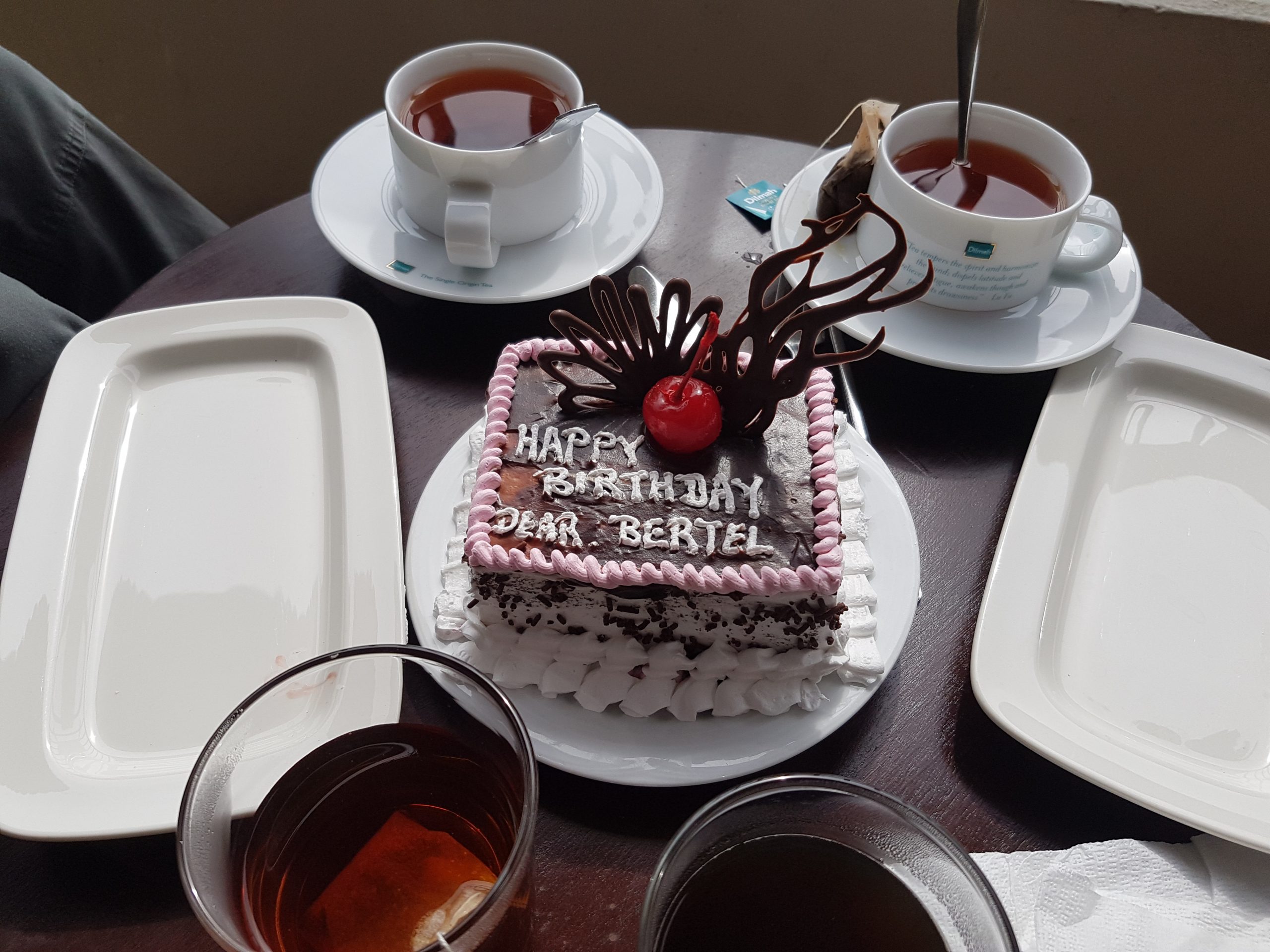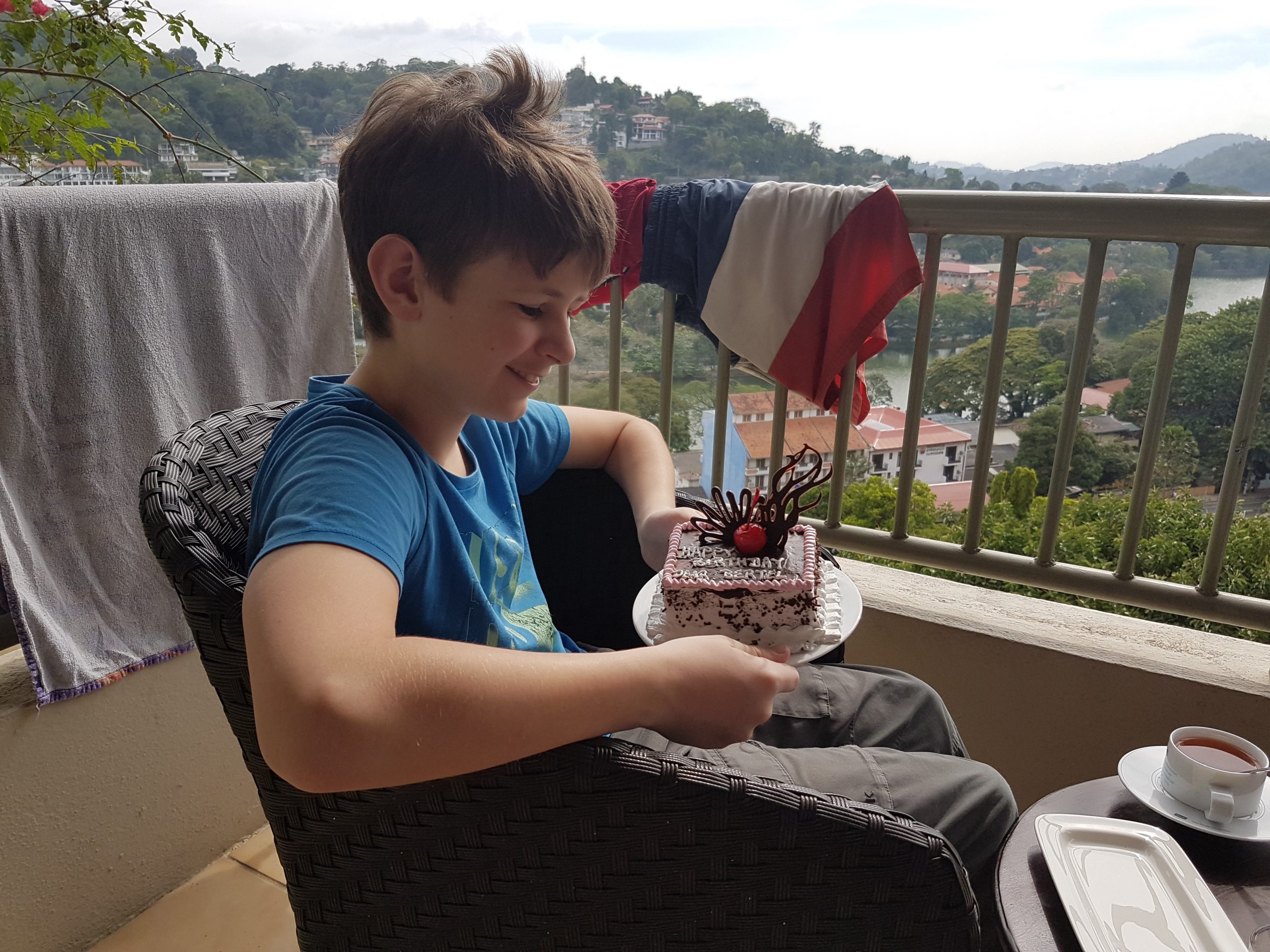 Vi bor med udsigt til søen og med egen hotelpool, som vi straks benytter os af. På vejen ind i hotellet har jeg fortalt portieren, at det i dag er Bertels fødselsdag. Han fylder 12 år og er nu den glade ejer af en ny Iphone 6. Superdejligt! og vel oppe af poolen er drengen da også helt salig. Men nu kommer der kage. Hotellet har taget initiativet og møder op med chokoladekage med påskrift. Sikke en dag og kagen er faktisk godt!