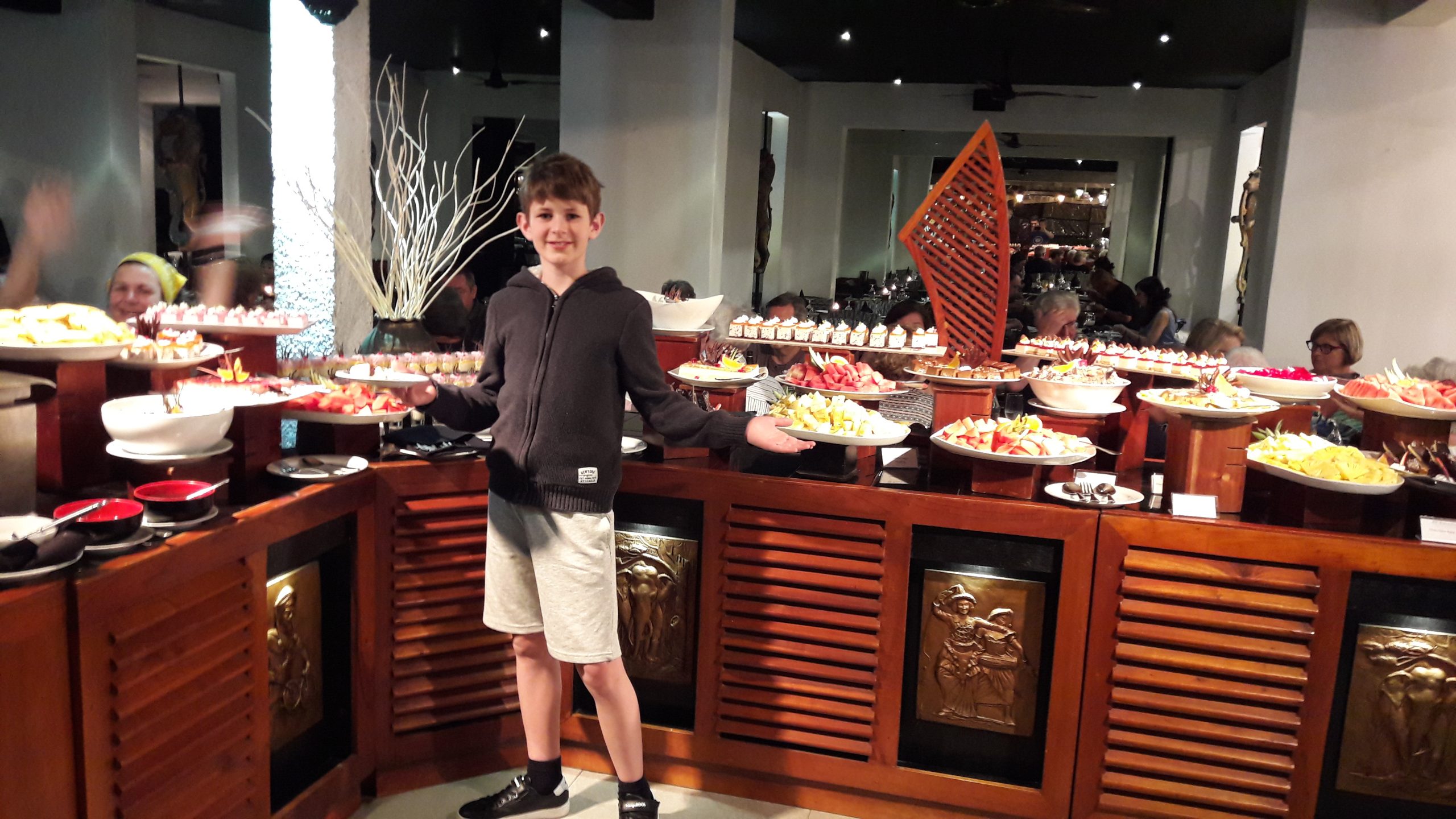 Vi runder et marked samme eftermiddag for lige at snuse til byen. Rasmus køber hårspænder og Bertel finder et kvalitetscover til kun 28 kr. Kongelig er også vores aftensmad. Vi spiser på hotellet. Der er alle slags curri og såmænd også pasta bolognaise til Bertel. Sikke en fødselsdag! Vi falder i søvn kl. 20 og vågner næste morgen kl. 9.30, – stadig lidt flytrætte.