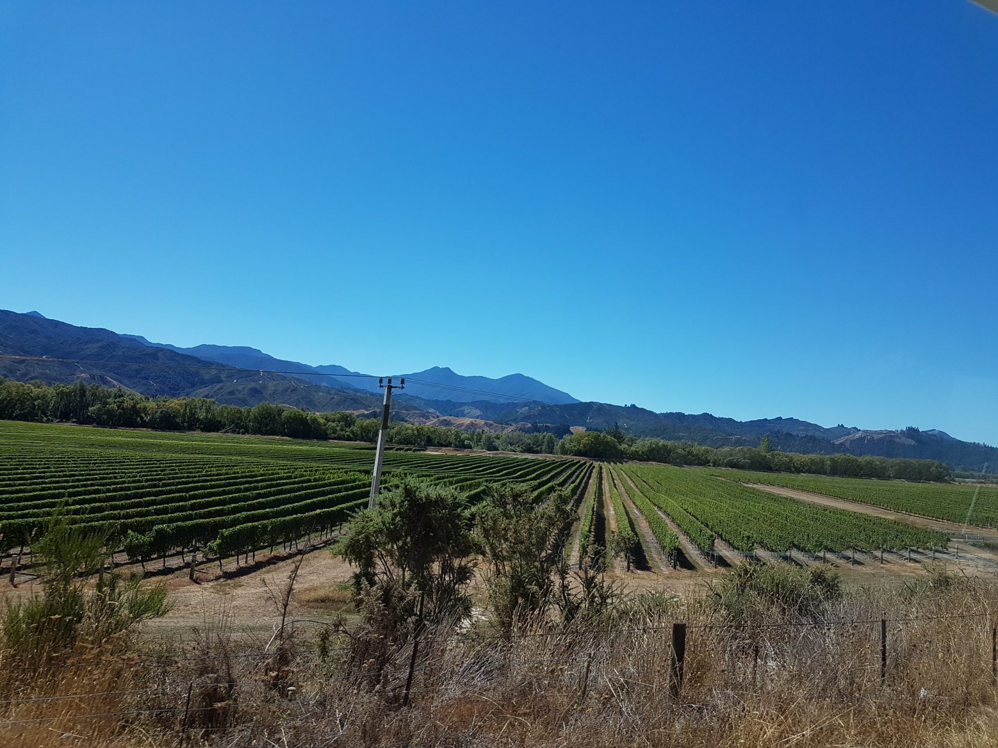 Det nordlige territorium af Sydøen er vinland. Mark efter mark arbejder vi os op til Picton og pludselig svinger Mads ind til højre. Nu skal vi sgu’ smage vin. Drengene melder hus forbi og camper udenfor med en cola, mens vi bænker os under grønne vinranker og smager på Pinot Noir fra Huset FROMM. Der ryger også lige en osteanretning ned, inden vi er klar ude hos drengene igen. ”Smagte det godt?”, spørger de? – og det gjorde det, men ikke nok til at vi ville betale 625NZD i omkostninger for at få et par flasker skibet til Danmark.