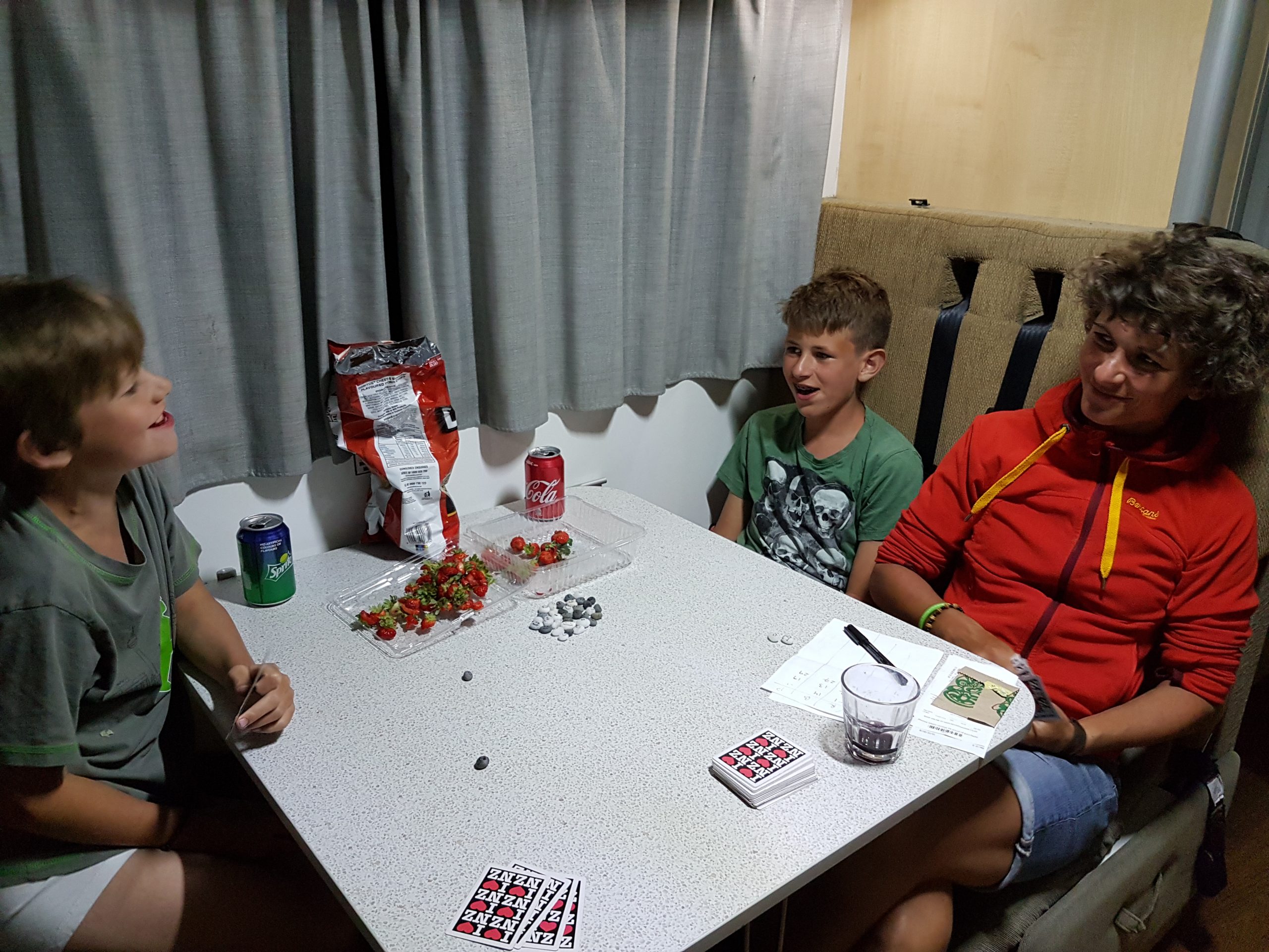 Så spiller vi en omgang piratbridge med de stjålne spillekort, som jeg glemte at betale for i Wanaka, mens vi spiser de sidste bær.